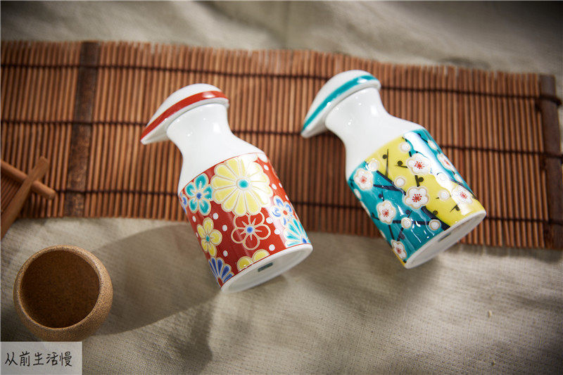 Spot Japan Imports Jiugu Burmwood Hand-painted Cherry Blossom Rabbit Mountain Tea Flower and Soy Sauce Vinegar Oil Pot Fuji Mountain Dip Saucer