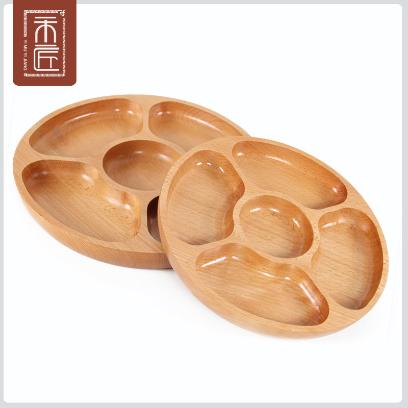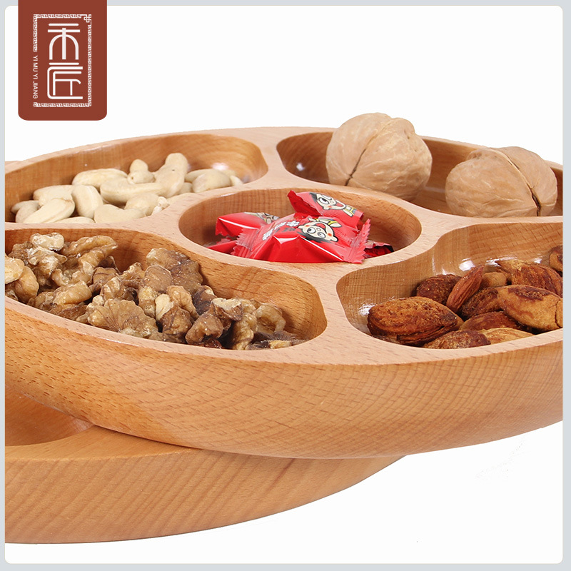 Early wood original product creative beech wood dried fruit plate Japanese five boxes of snacks divided boxes of candy plate living room melon and fruit box