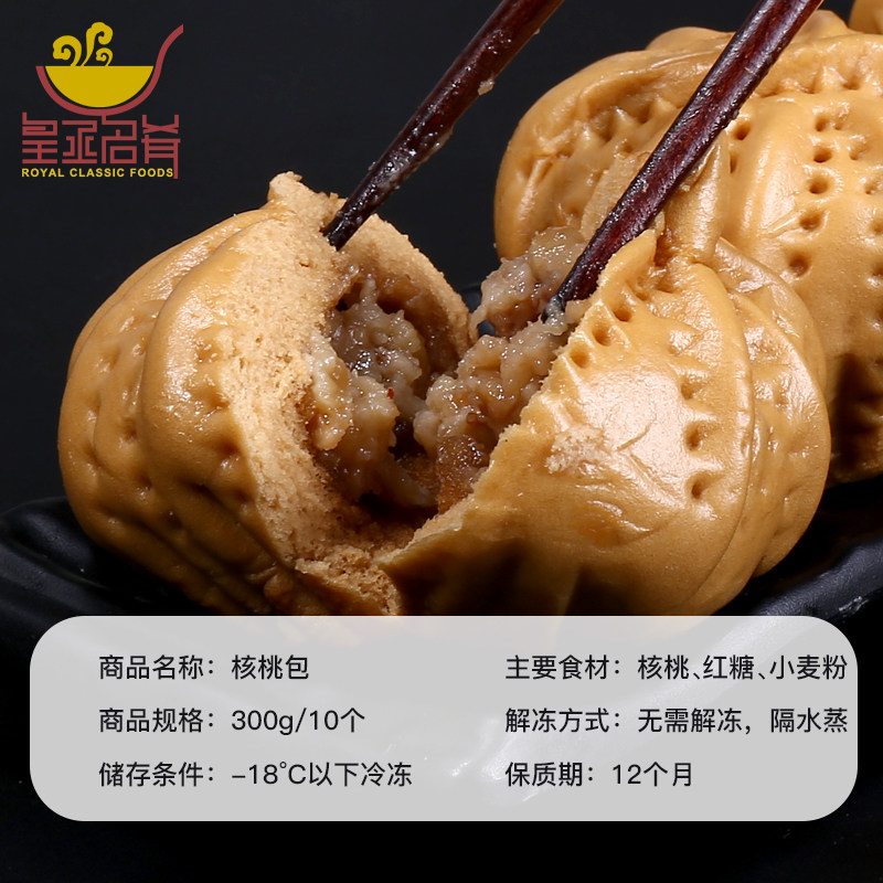 Authentic walnut bag Cantonese style 300g 10 pieces breakfast semi-finished frozen fast food hotel snack wholesale