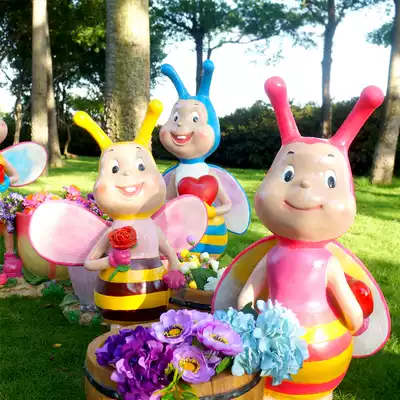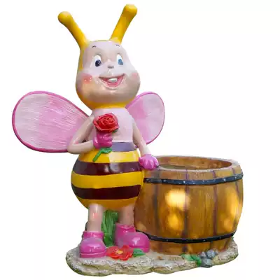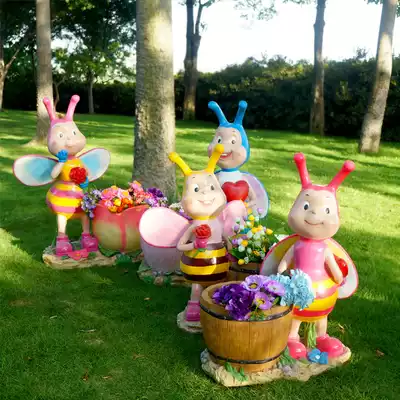 Outdoor cartoon bee flower cylinder flower garden decoration kindergarten craft gift decoration custom sculpture glass fiber ornaments