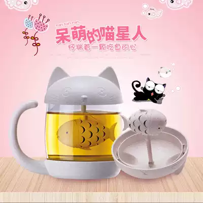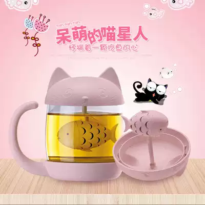 Shake sound The same meow cat cute kitten glass with lid glass filter cup Cat eat fish glass