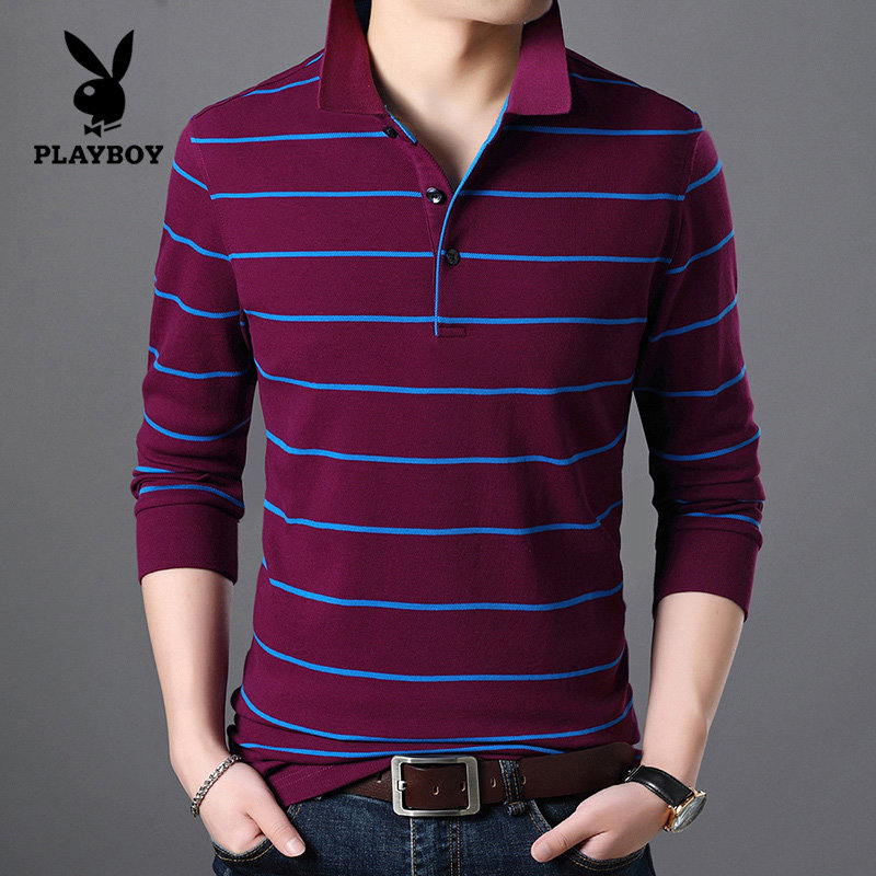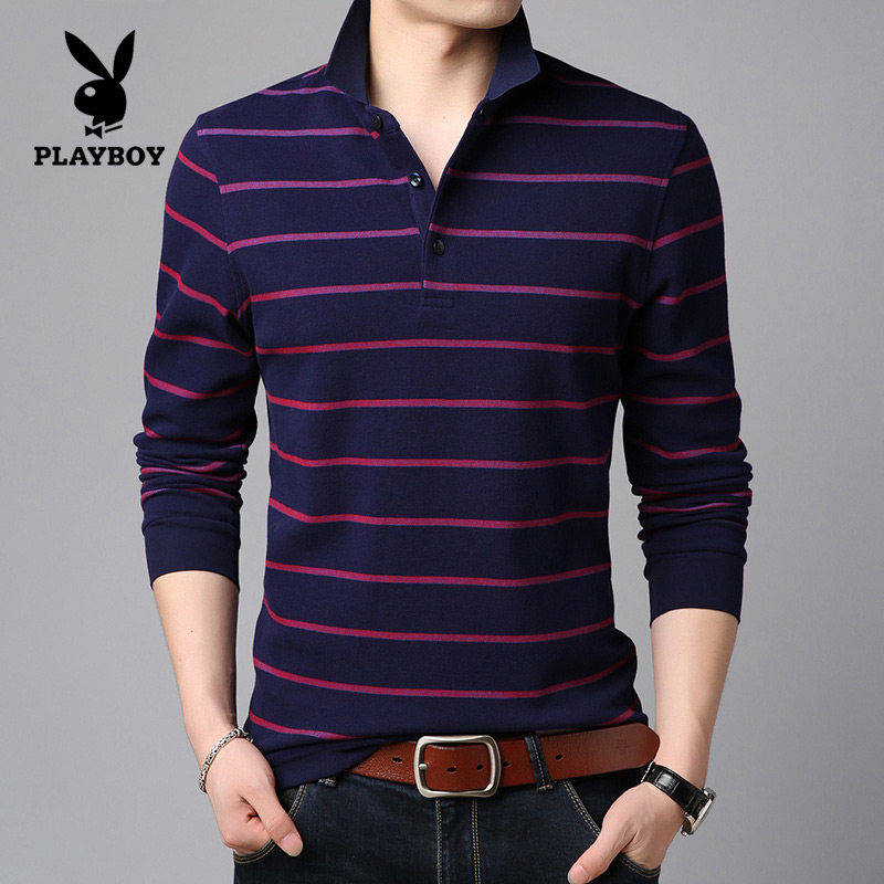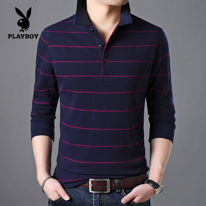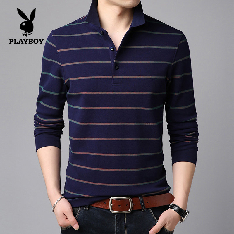 Flowers Playboy Spring Autumn Season Middle Aged Men Long Sleeves T-shirt Pure Cotton Turtlenecks Dpa Blouse Striped Men's Jersey Undershirt