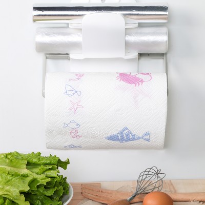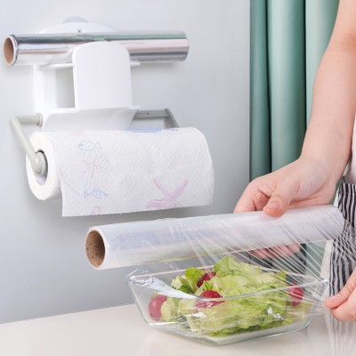 Kitchen rack retractable refrigerator hanger free punch no trace sticker multi-layer aluminum foil paper towel cling film storage rack