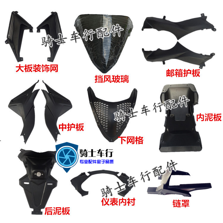 1 windscreen 2 head cover 3 front plate 4 large plate 5 large plate decoration net 6 lower diversion 7 middle plate 8 rear rear end shell 9 rear tail shell 10 tank 11 tank protection plate instrument lining inner plate lower grid chain hood full