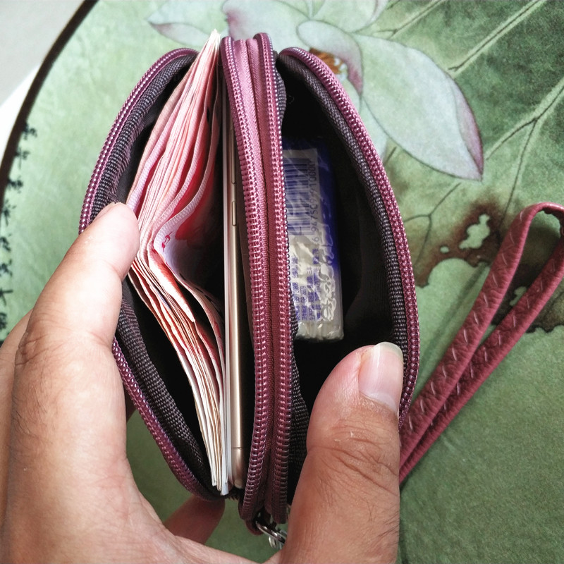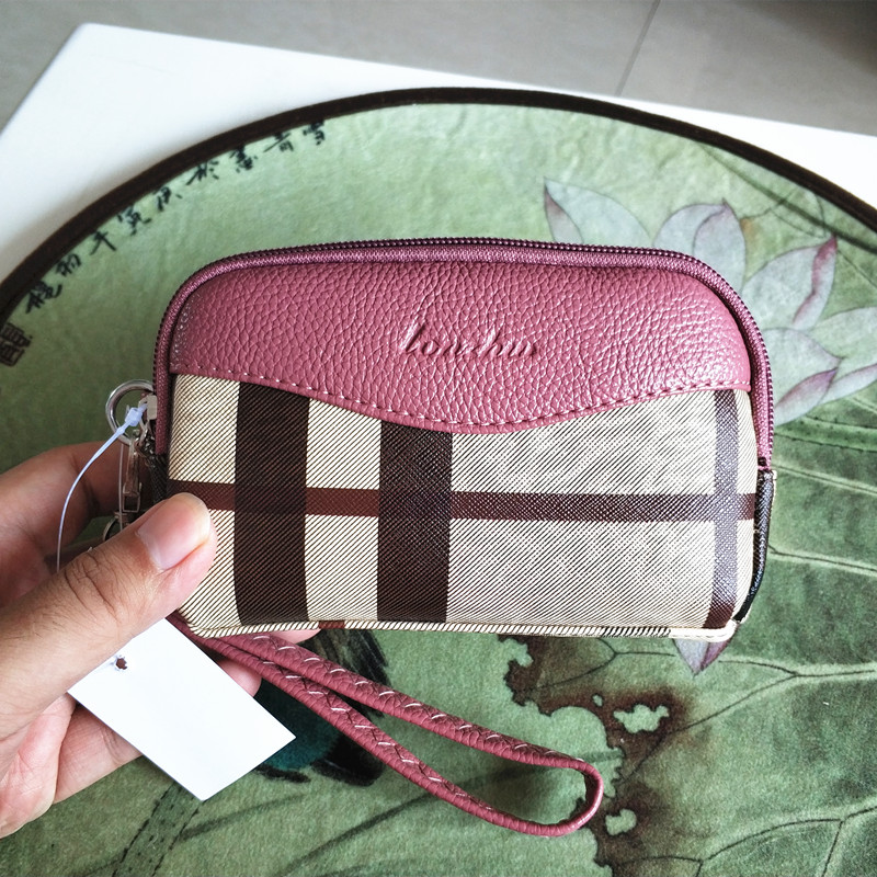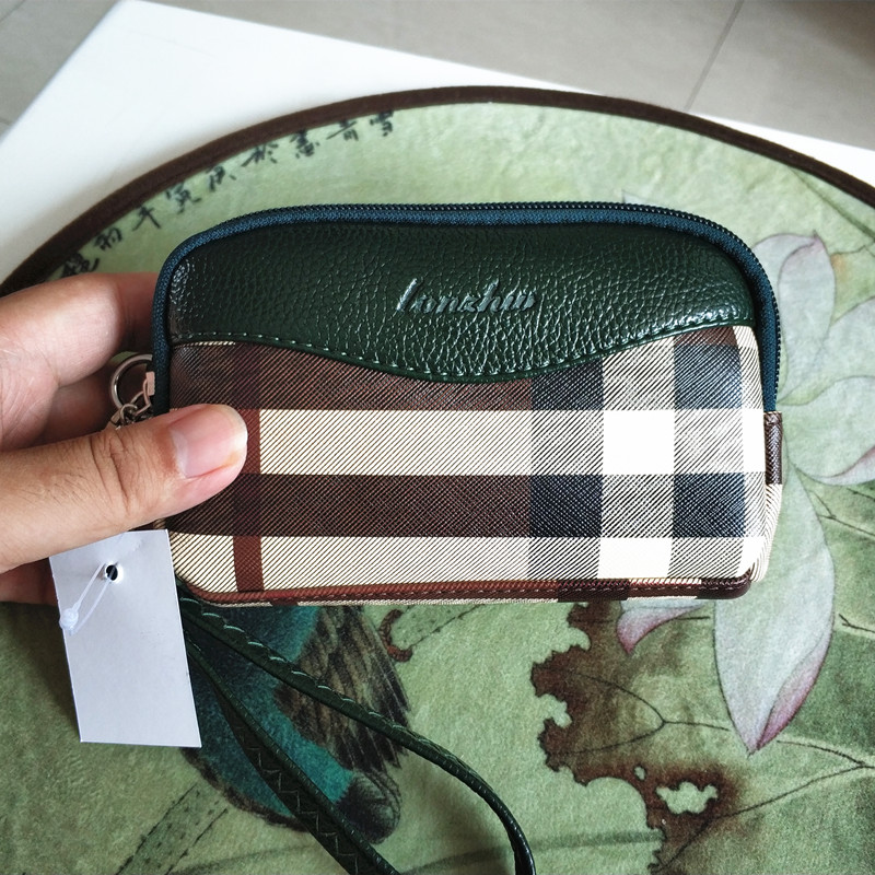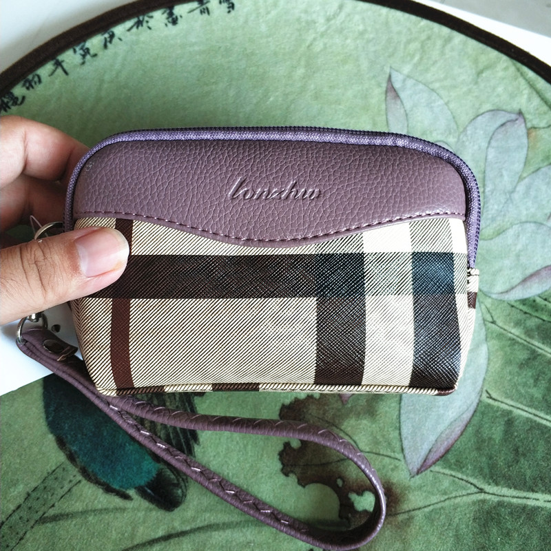 Middle-aged lady mother fashion plaid double zipper simple change mobile phone clutch bag grocery shopping hand carry key small bag