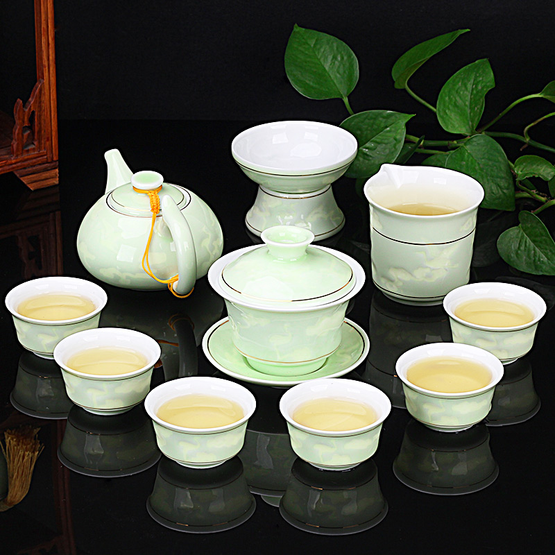 10 head cover bowls-Mei Ziqing-shadow sculpted Xiang Yunhe 10 head teapot-Mei Ziqing-shadow sculpted Xiang Yunhe 7 head teapot plum Youth years with fish 7 heads teapot emerald blue year after year with fish 10 teapot plum green