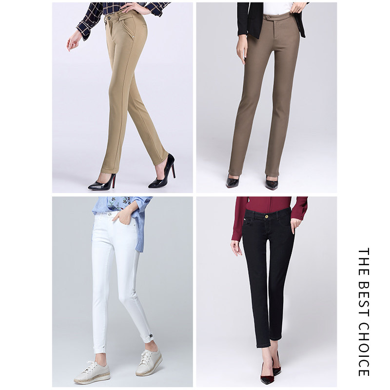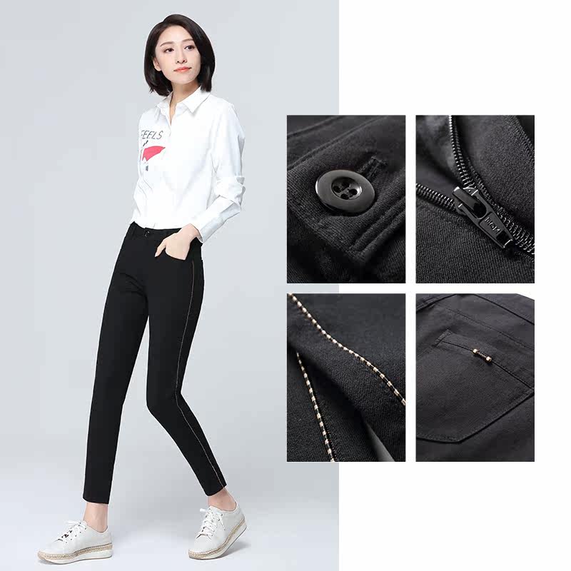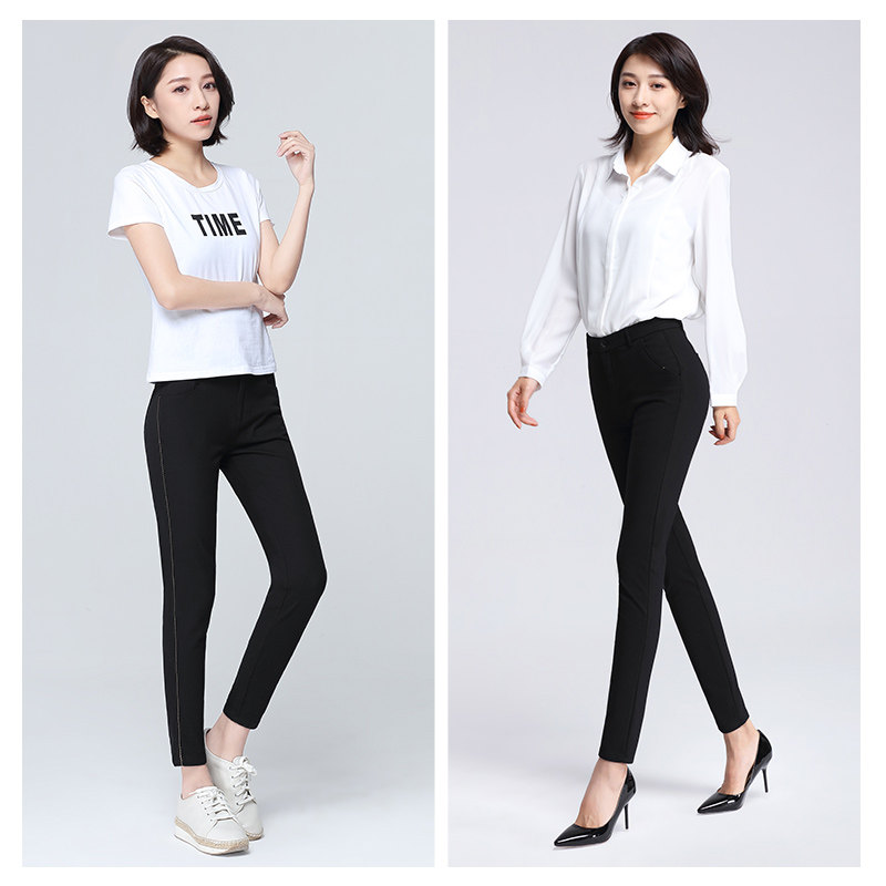 Czech Pure Black Casual Pants Woman Small Feet Big Size Spring High Waist Four Sides Elastic Pencil Pants Small West Pants Long Pants Knit