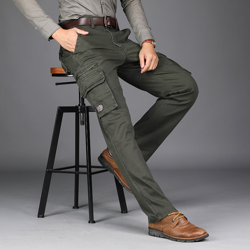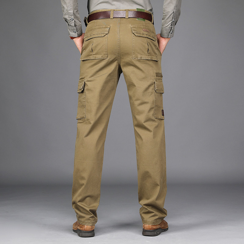 2023 spring men's outdoor thick overalls men's cotton casual pants large size loose multi-pocket pants long pants