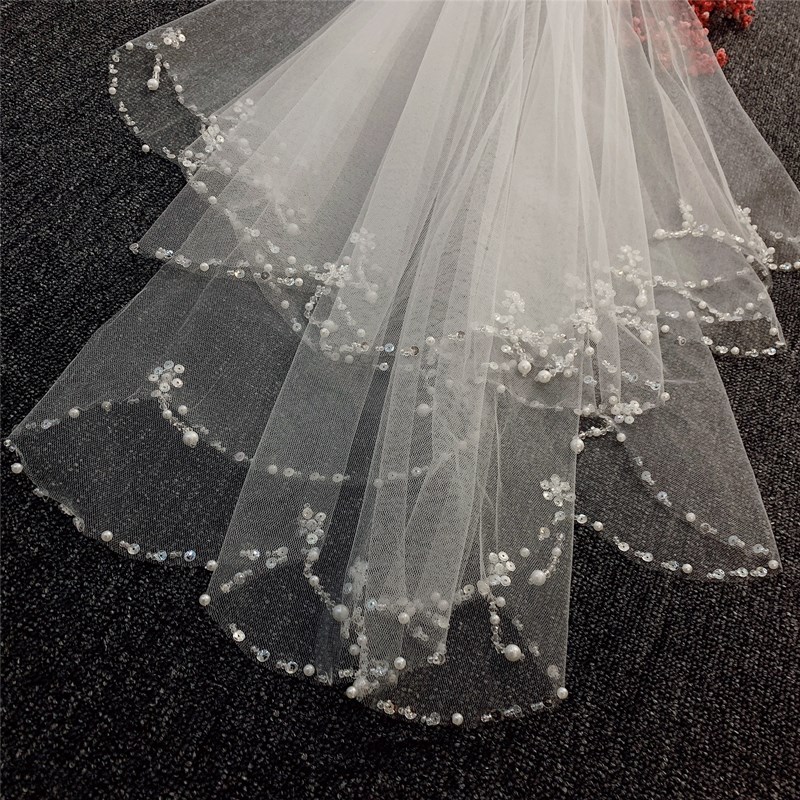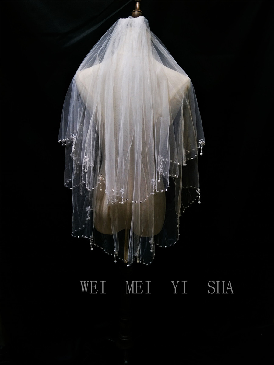 New veil pendant beads hand short multi-layer hard yarn princess photo travel bride wedding veil