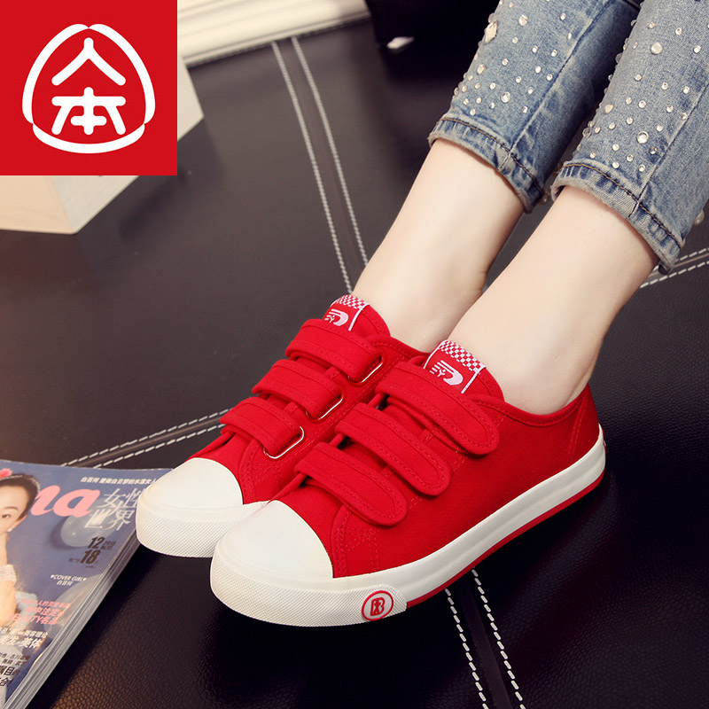 Human-oriented red canvas shoes female high school student shoes big boy Korean version velcro versatile casual shoes junior high school board shoes