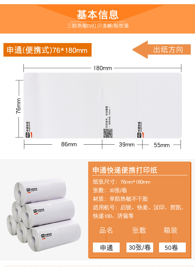 Shentong express delivery portable paper One joint photocopy paper electronic face single hot sensitive paper 100 * 180 vegetable bird face single shoulder