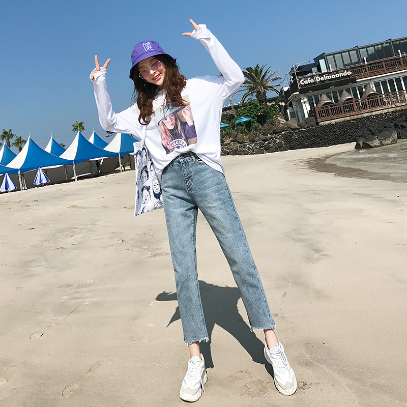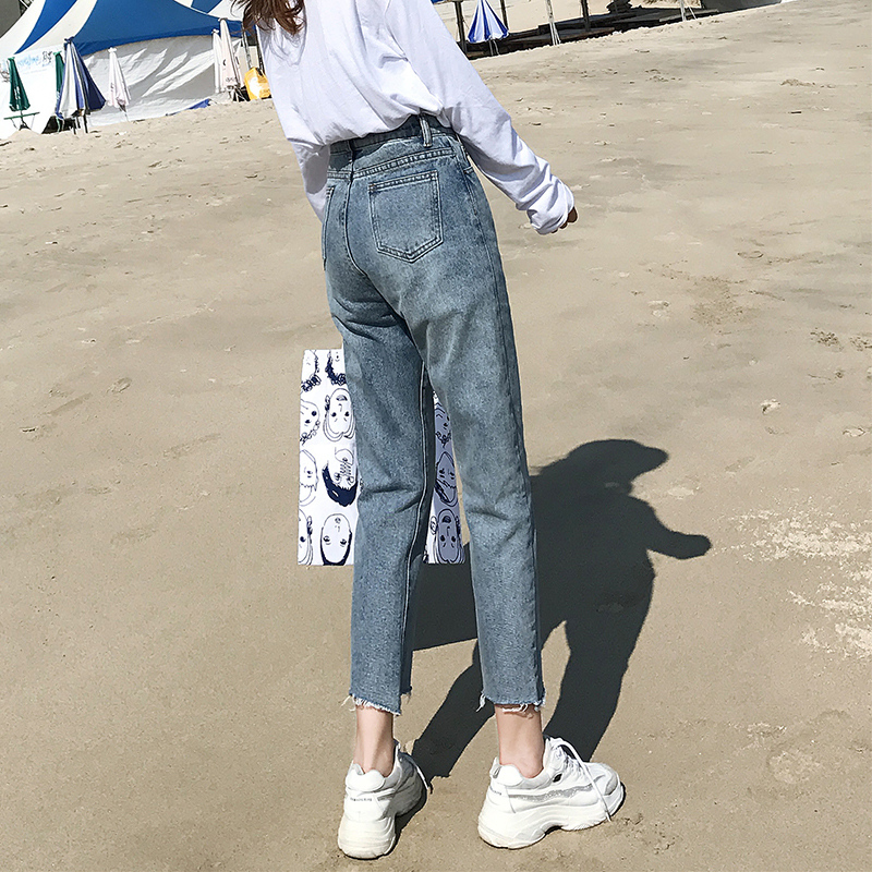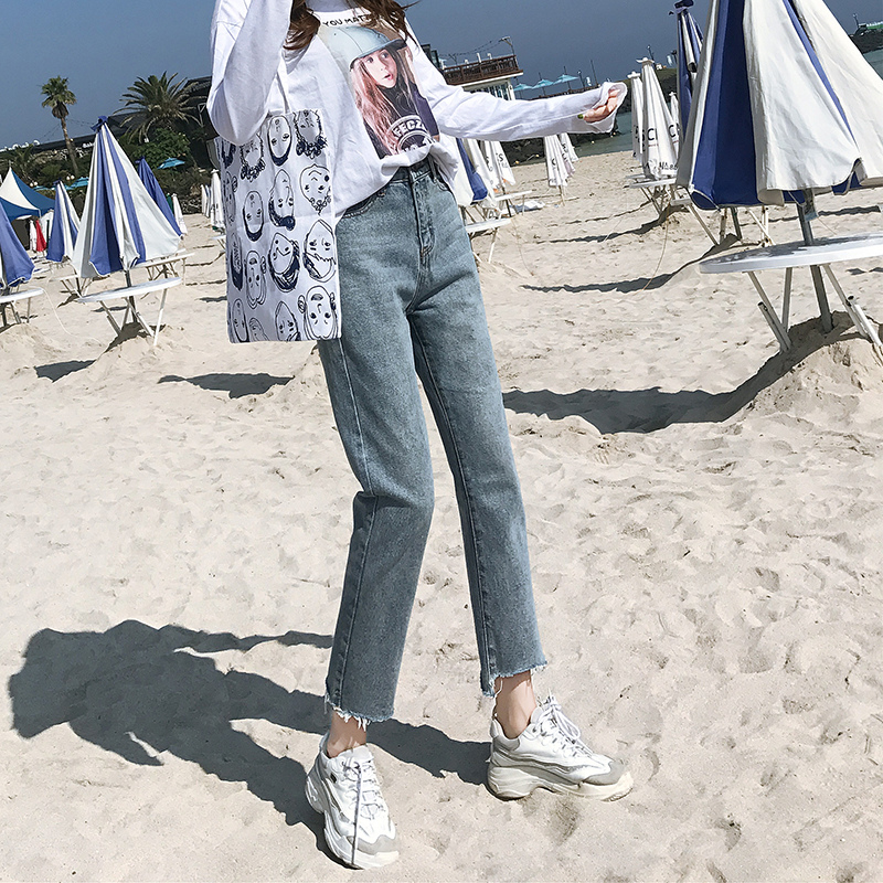 High Waist 90% Jeans Woman 2021 Spring Han Edition Loose First Love Broadleg Retro Port Taste Chic Straight Drum Pants
