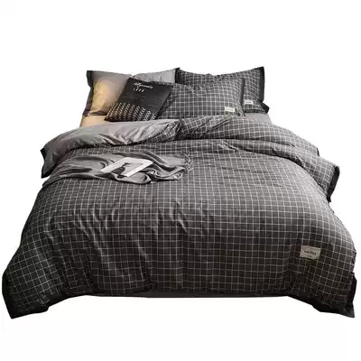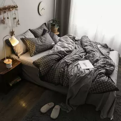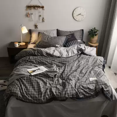 ins men's plaid Nordic simple cotton 4 four-piece set Cotton webbing bedding Student bedroom bedding three-piece set