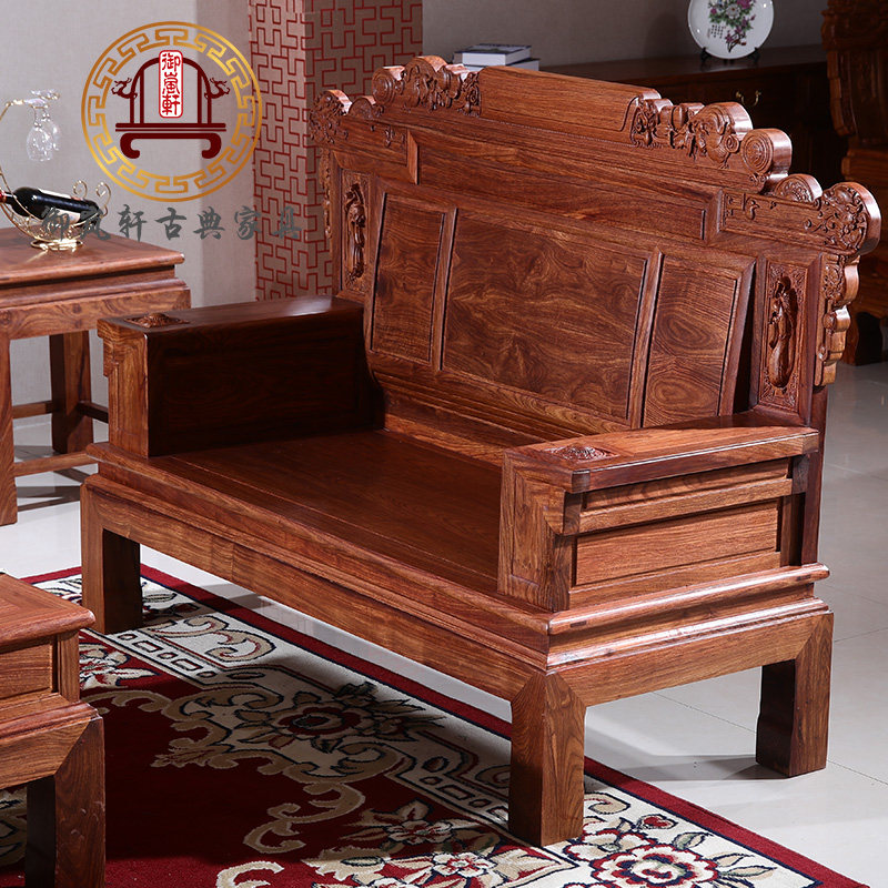 New Chinese style solid wood sofa rosewood hedgehog rosewood living room furniture Ming style mahogany carved sofa set combination