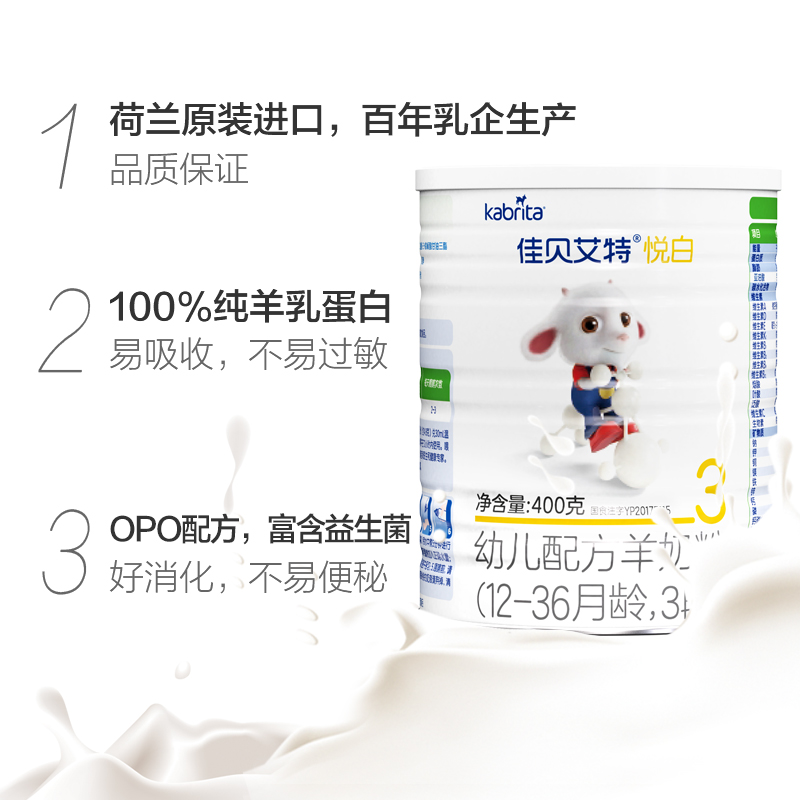 Holland imported Jiabei Aite infant formula baby pure goat milk powder Yue white 3 sections 1-3 years old 400g