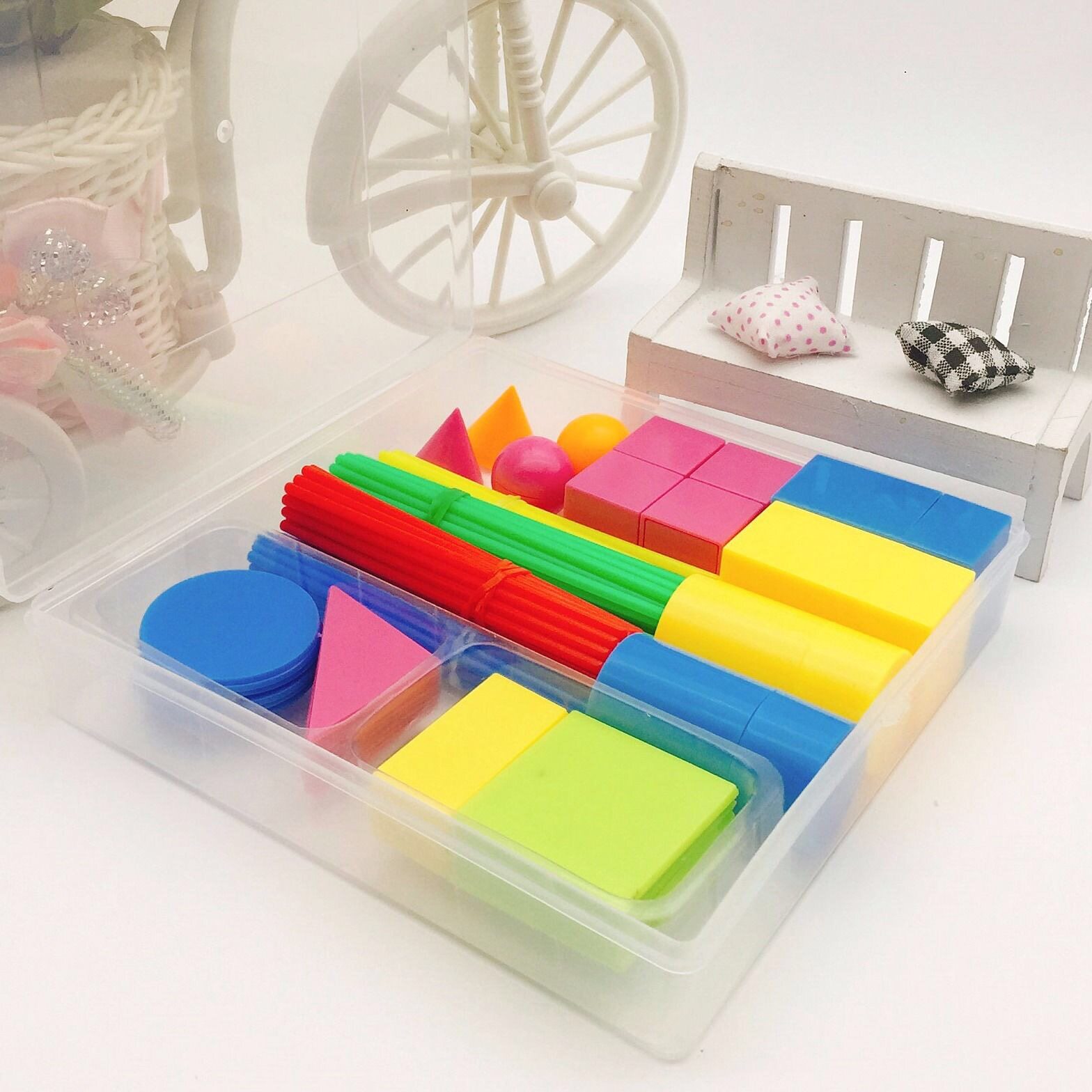 Primary school students first grade mathematics teaching aids Arithmetic stick Geometry model counting coin three-dimensional graphic film teaching aids set