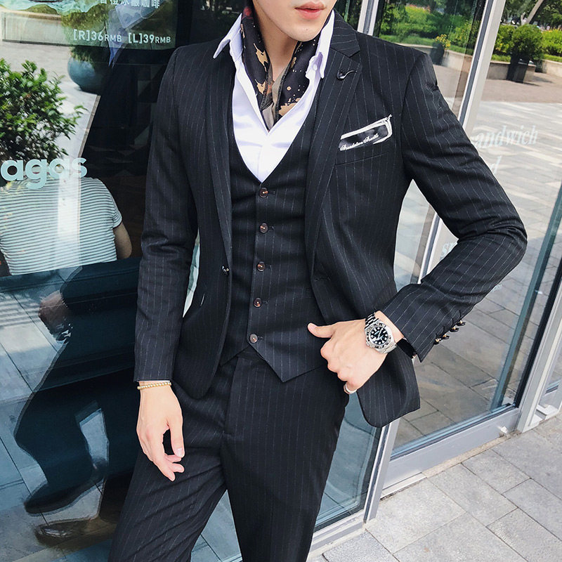 Men's suit suit Three sets of stripes Young Korean version of a professional suit New groom wedding gown Inlenwind