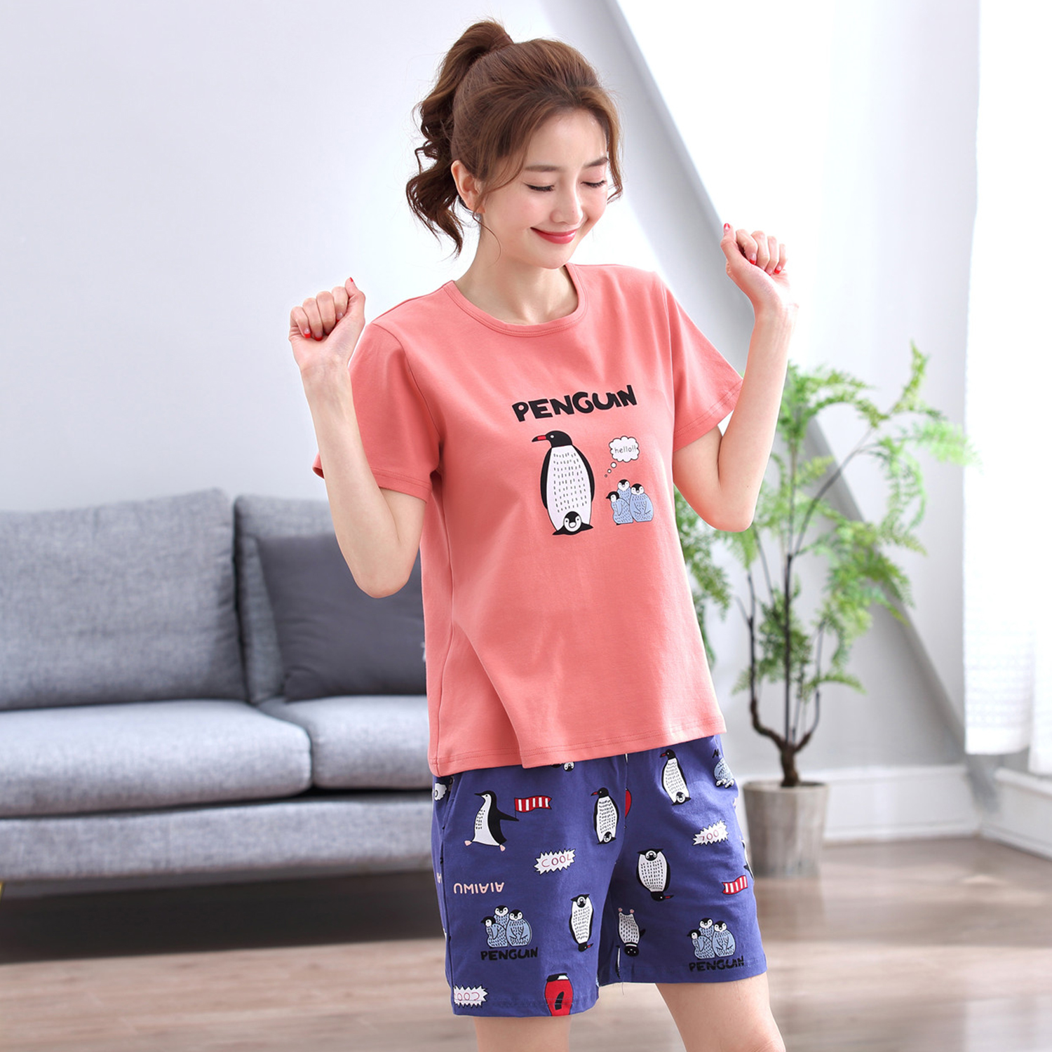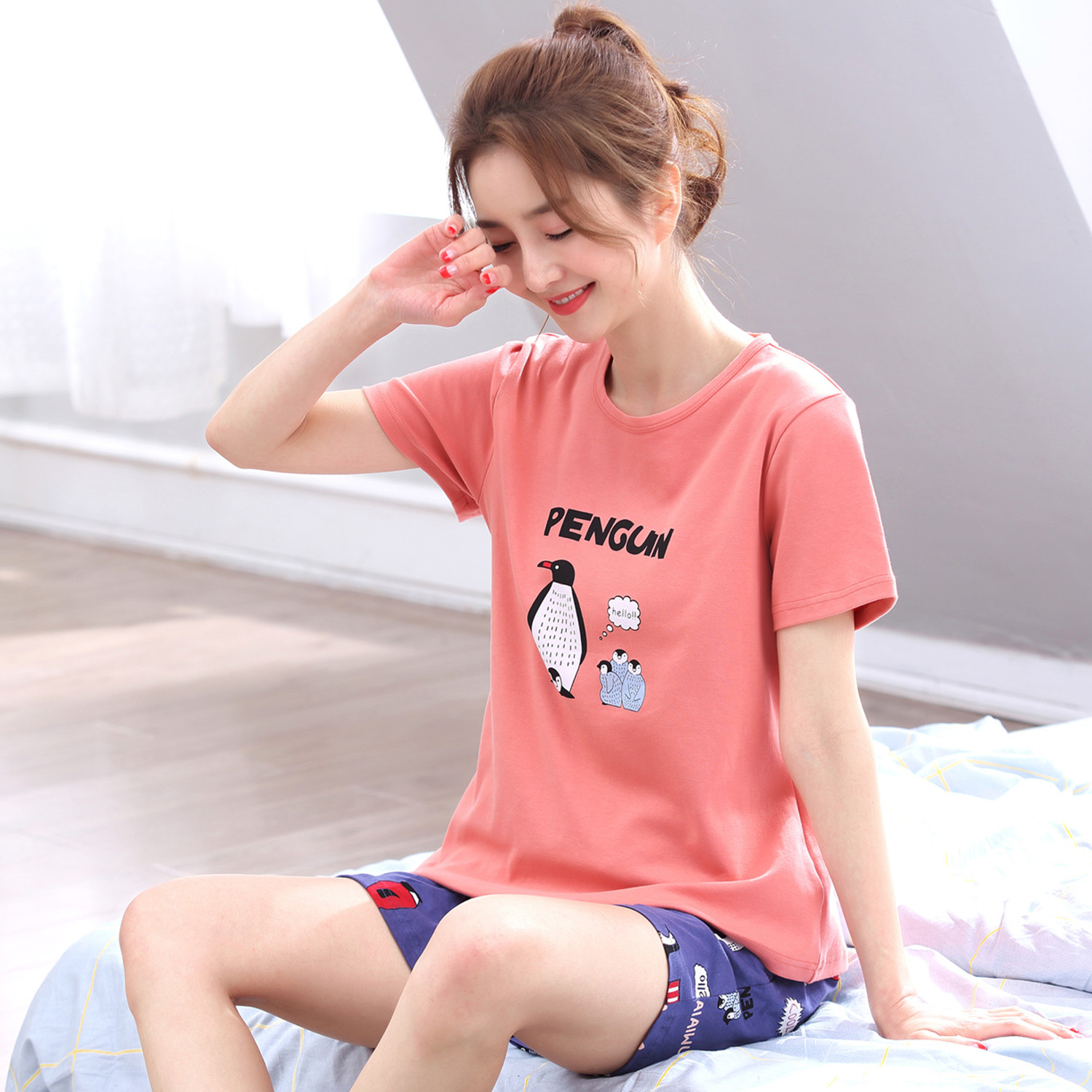 Pajamas Woman Summer Pure Cotton Short Sleeves Two Style Suits Korean version Loose Summer Extras Teen's Home Home Clothing Thin