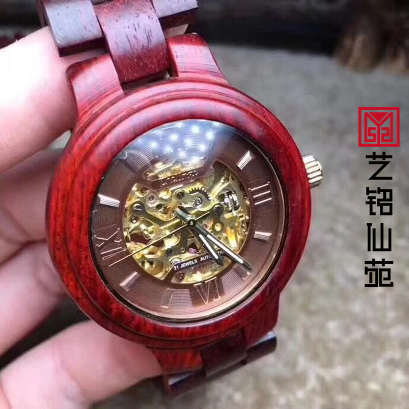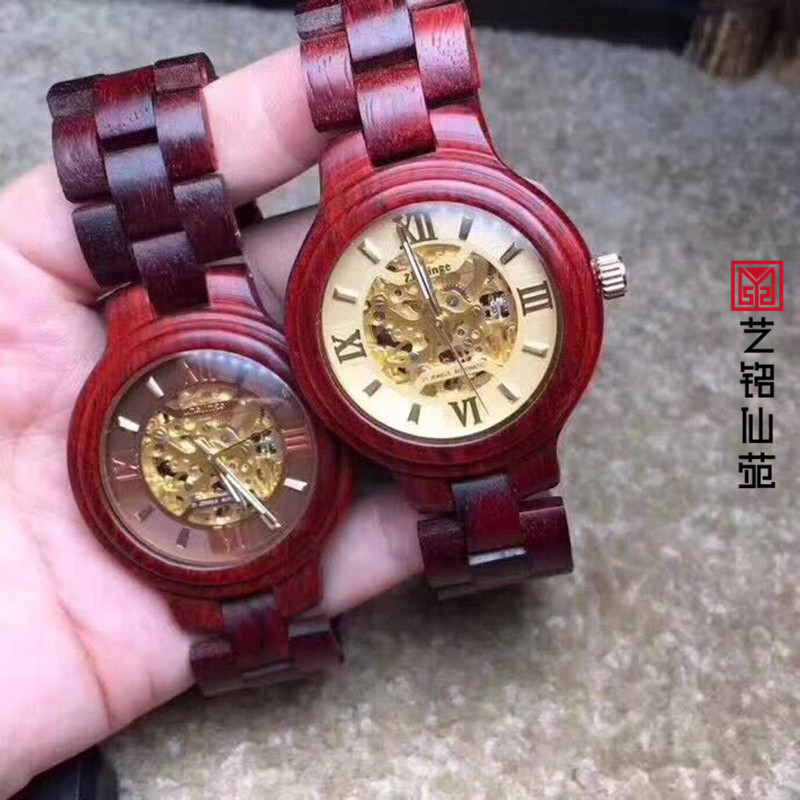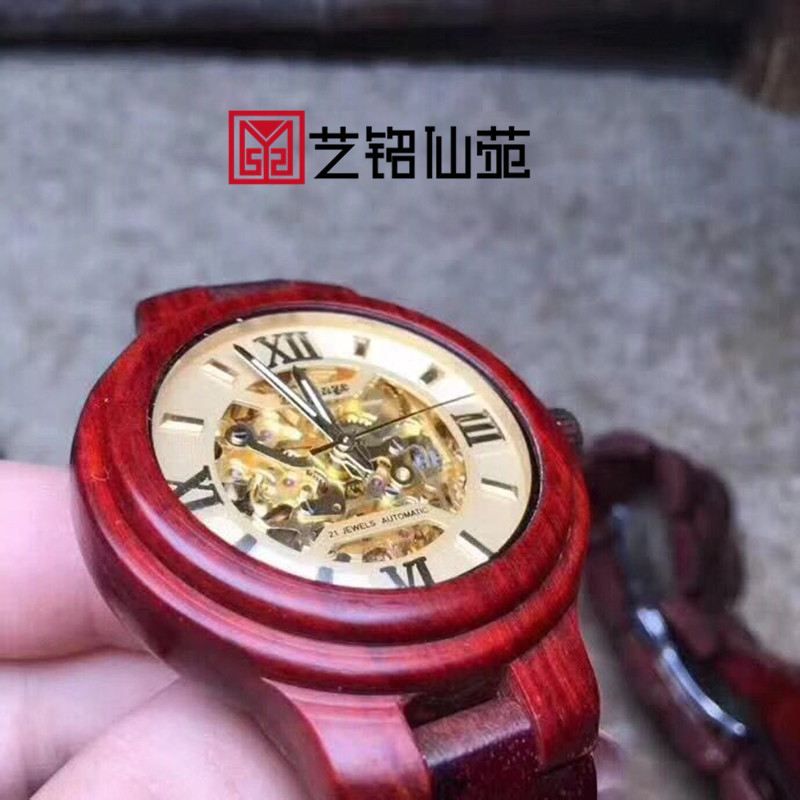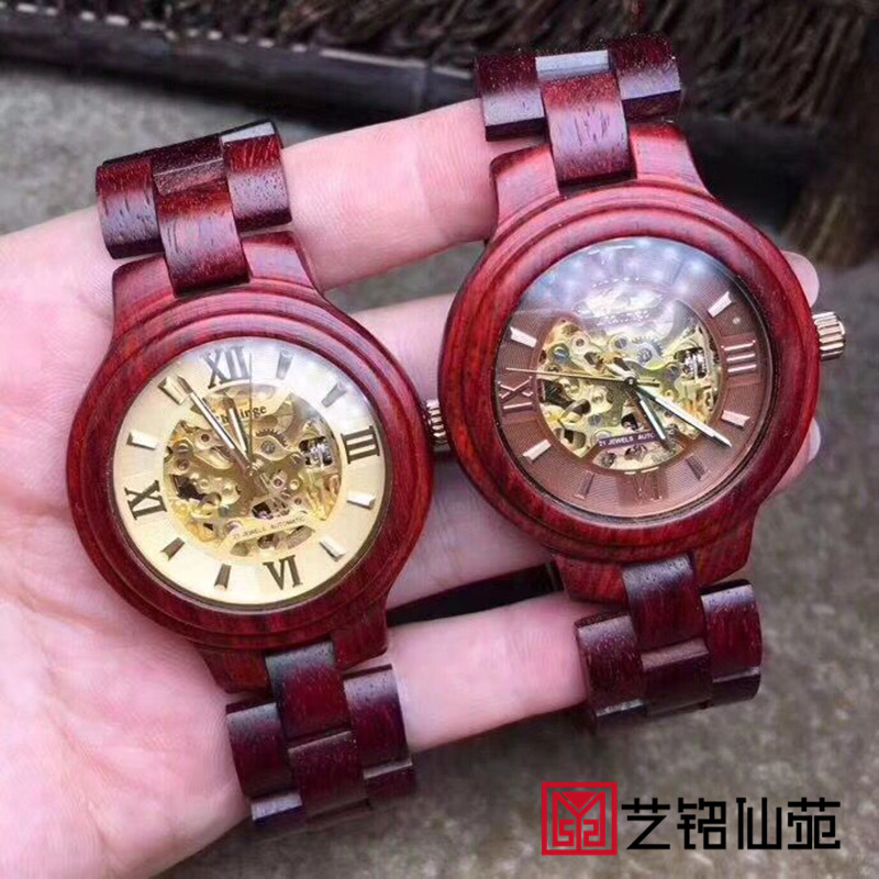 Small Leaf Purple Sandalwood Mechanical Watch Waterproof Retro Quartz Movement Hollowed-out Men And Women's Red Wood Watches Accessories Delivery Gift Canon