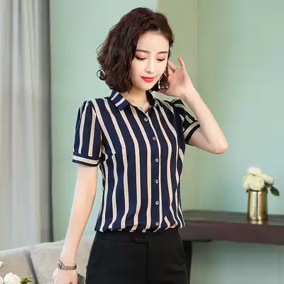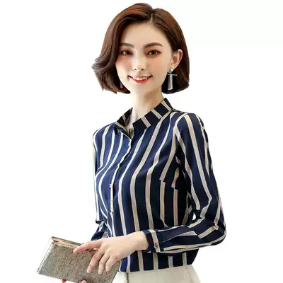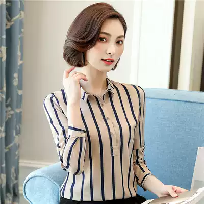 2021 new autumn Korean spring dress vertical stripe chiffon plus velvet shirt women long sleeve Joker shirt bottoming coat