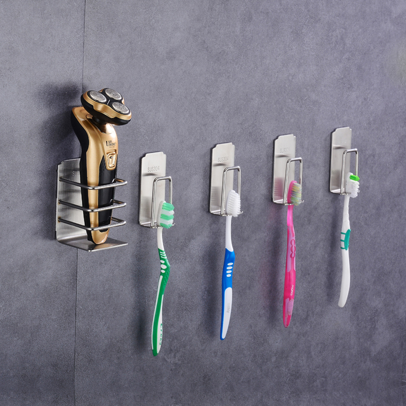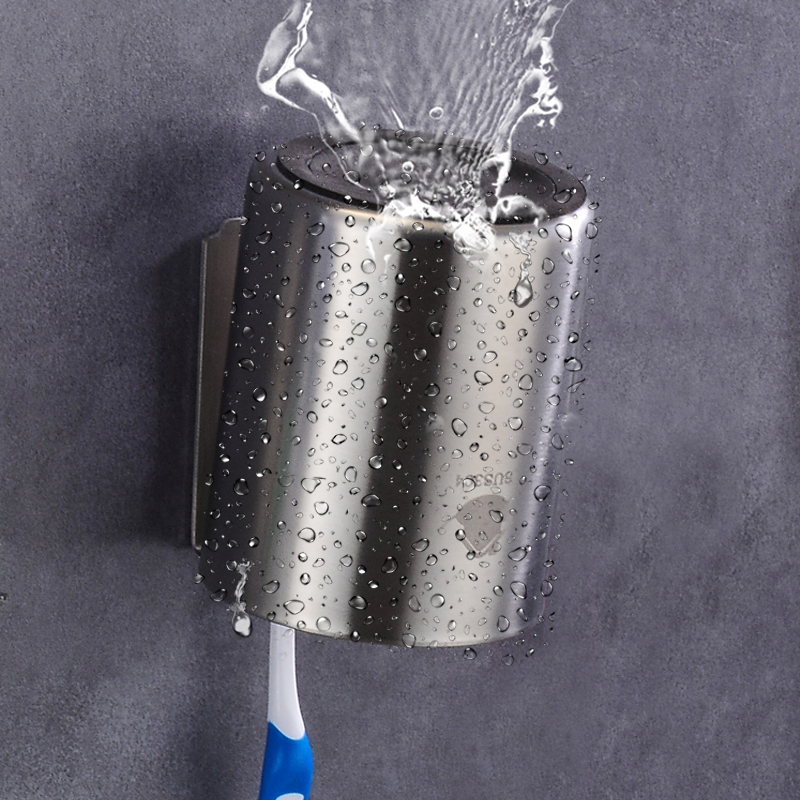 304 stainless steel toothbrush holder free of punch suction wall type wall-mounted rack tooth cup suit electric frame gargling cup