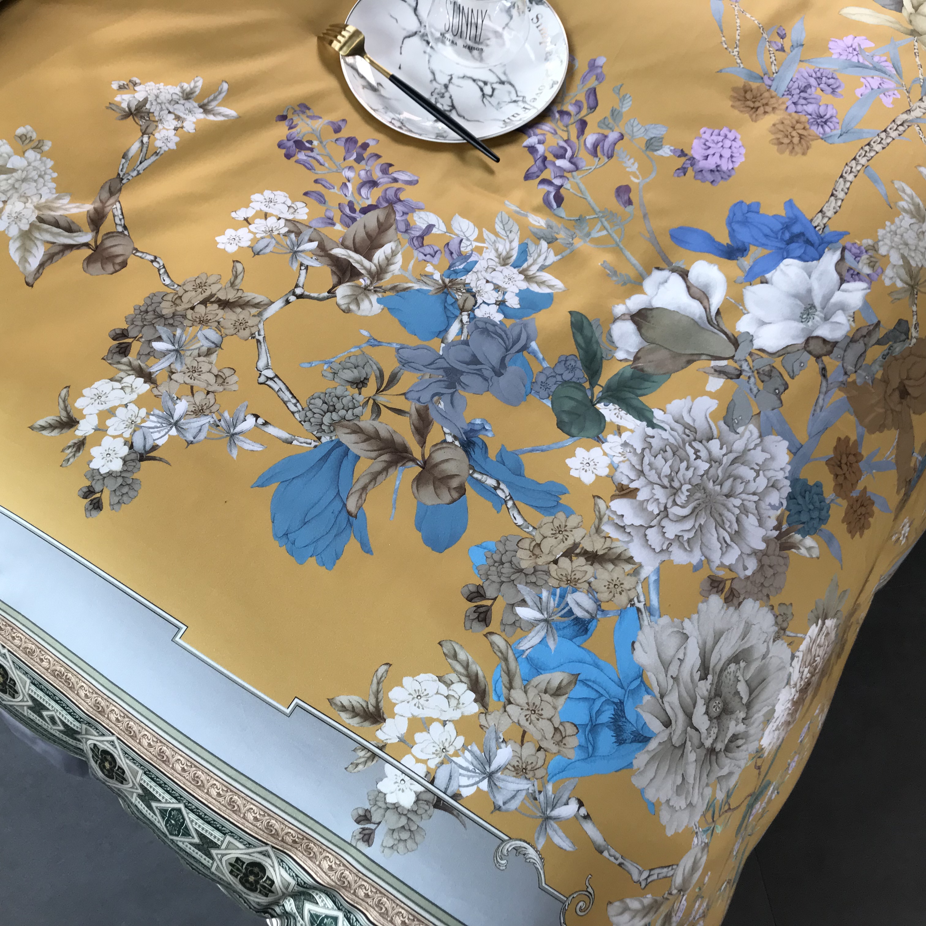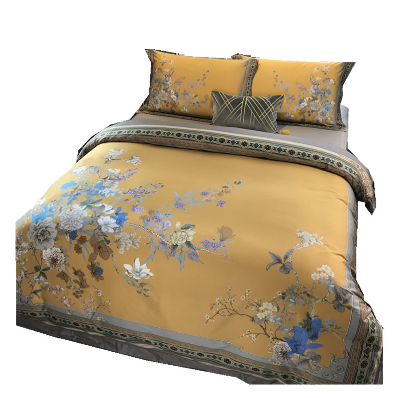 Chinese style of 100 digital printed full cotton four sets of vintage national windy satin pure cotton-like interbed bedding