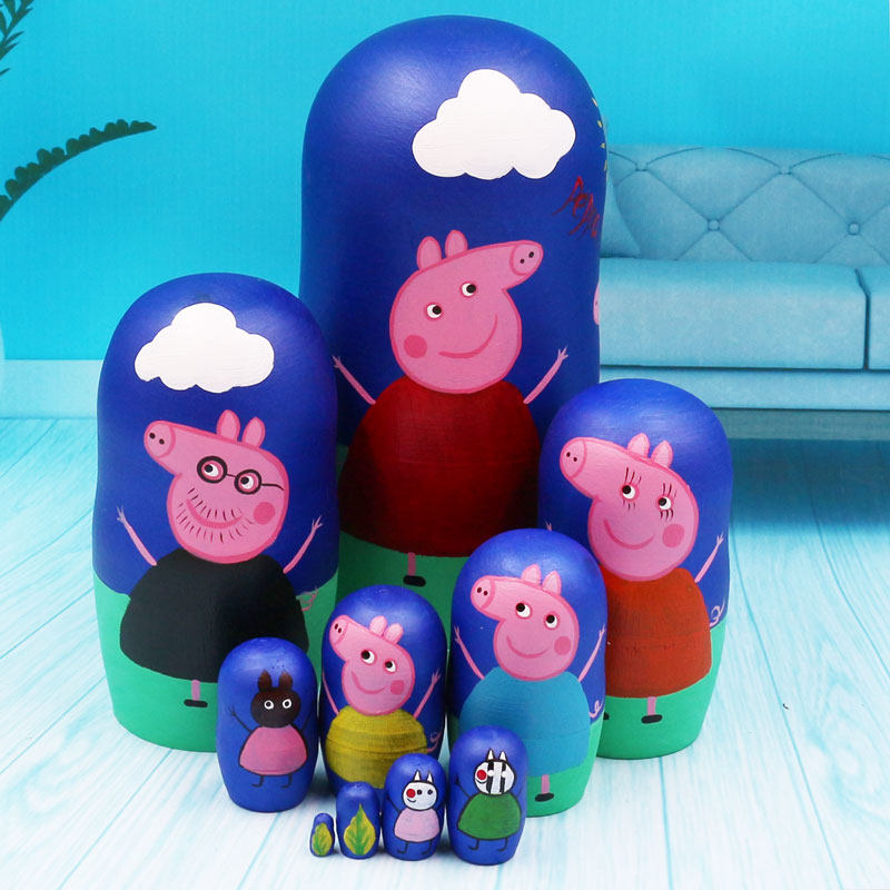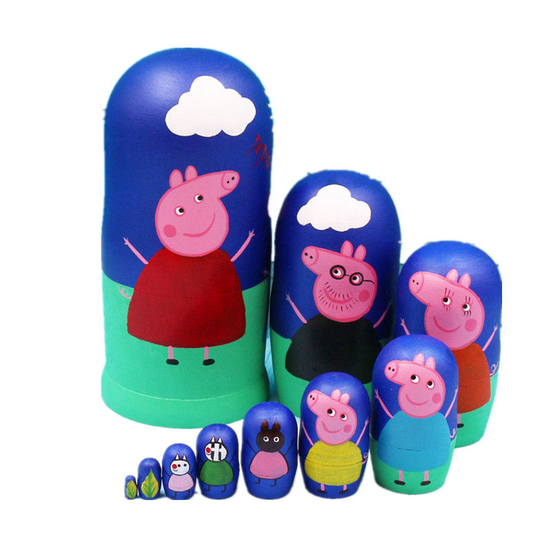 Russian matryoshka piglet 10 layers high quality painted cute cartoon puzzle children's toy air-dried basswood