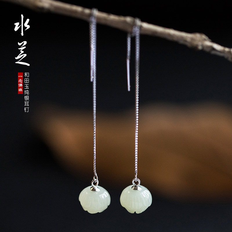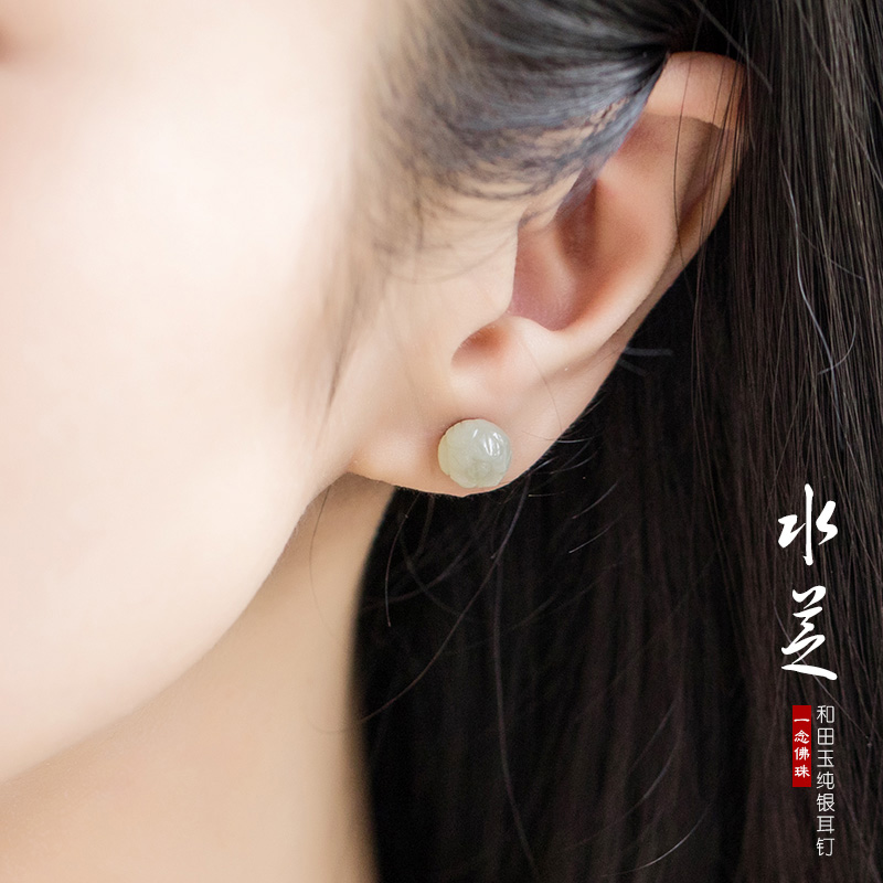 Pure silver and field jade (large lotus earnchpin) a pair of pure silver and field jade (large lotus earnchpin) a pair of pure silver and Tian jade (small lotus earnchpin) a pair of pure silver and Tian jade (small lotus ear chain) pair