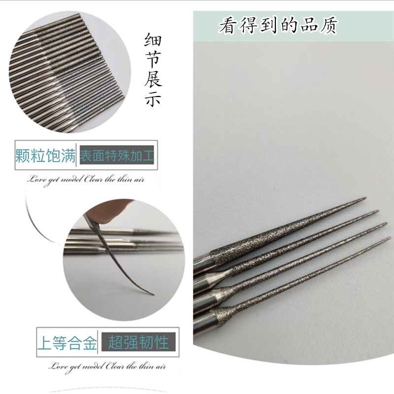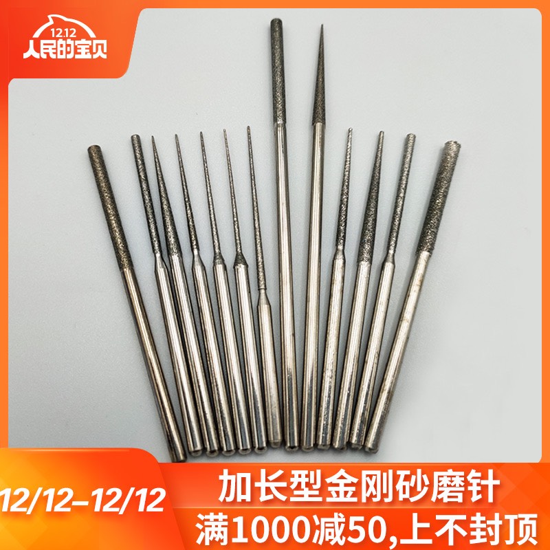 Lengthened grinding needle 3mm shank diamond grinding head large tip small tip cylindrical plated grinding head punching needle diamond grinding stick
