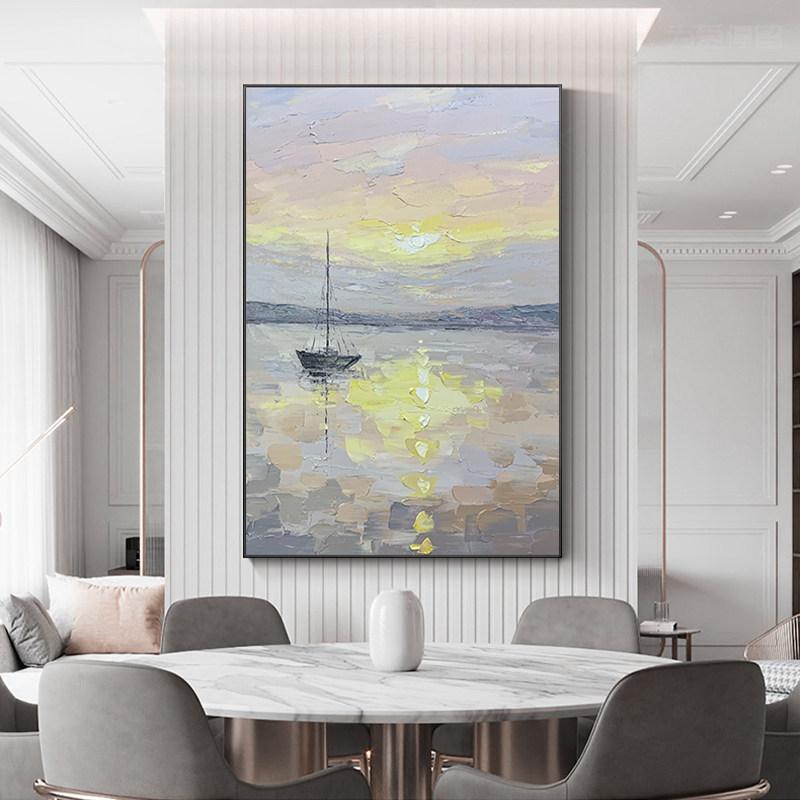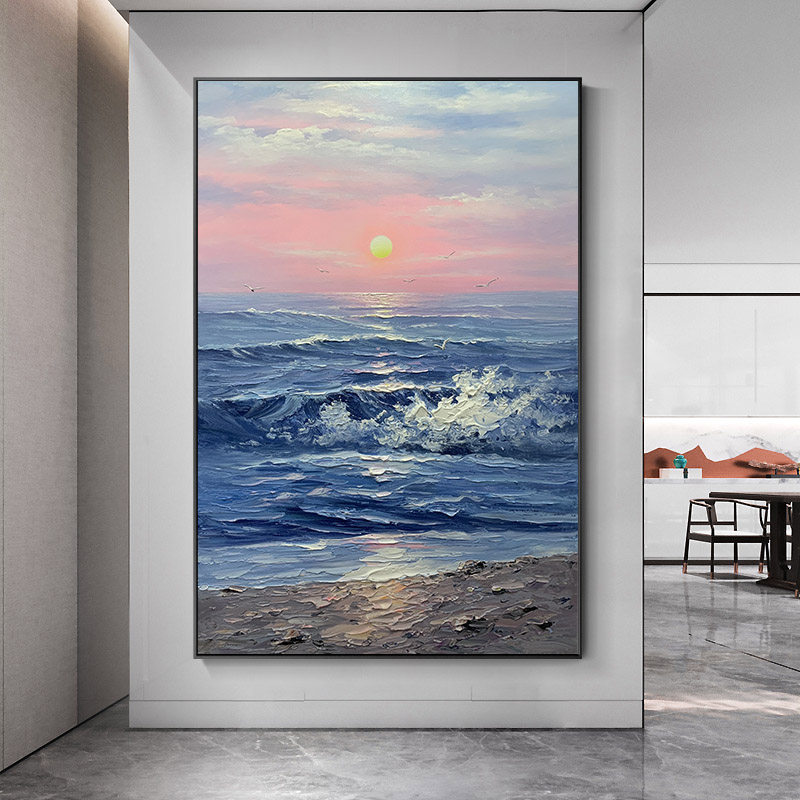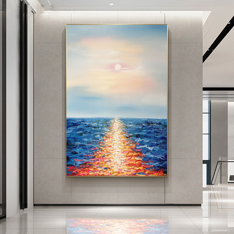 Pure Hand Painted Oil Painting Sea Sunrise Living Room Decoration Painting Sofa Background Wall Hung Painting Horizontal version frescoed Nordic light and luxurious