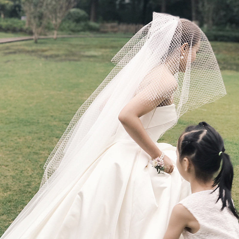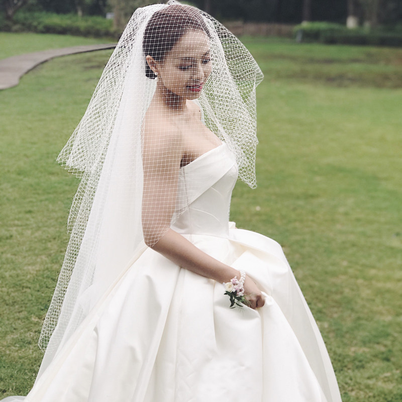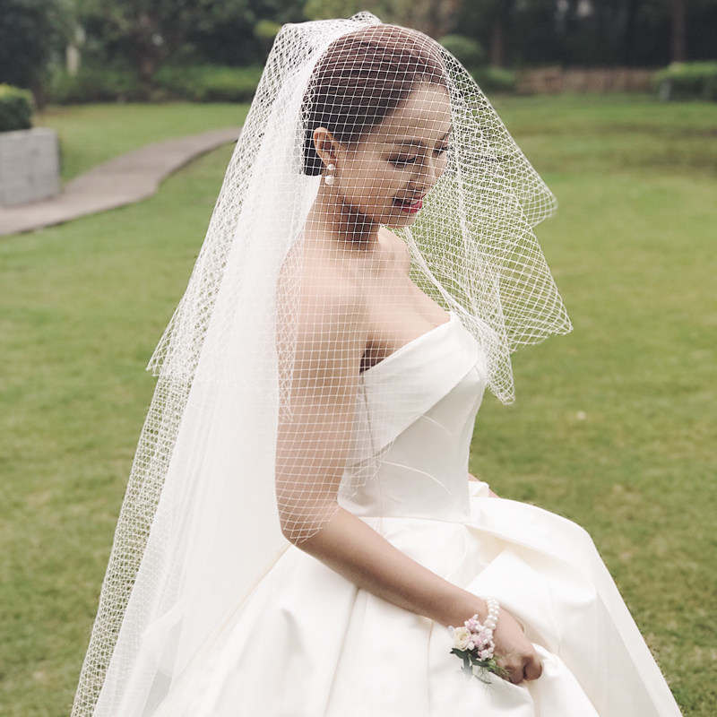 Grid veil 2021 new bride wedding wild short section forest department simple literary retro veil travel veil