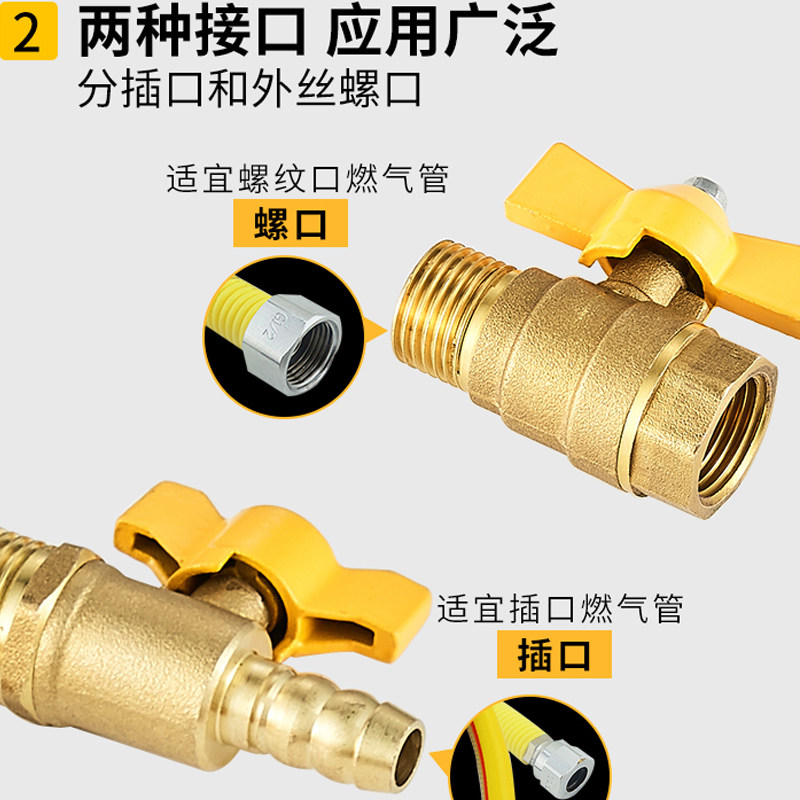 Total copper thickened gas valve gas valve gas boiler switch water heater fittings internal wire external wire ball valve 4 points