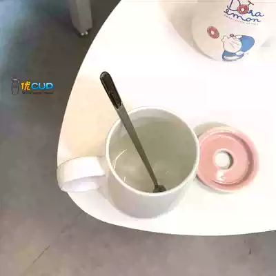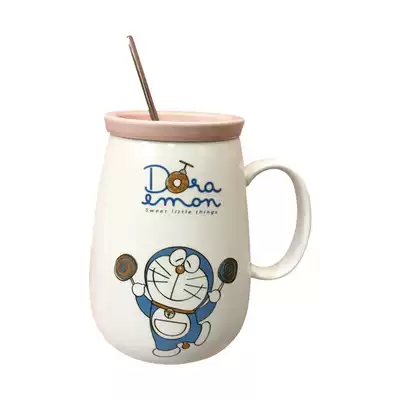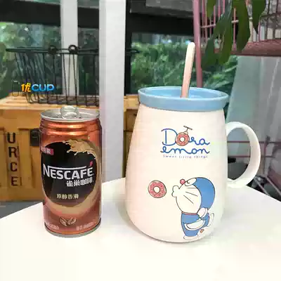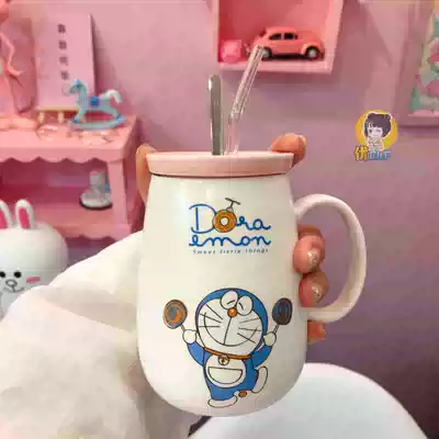 Doraemon big belly Cup Blue kiss Doraemon big belly Cup Blue kiss long spoon plus glass straw Doraemon big belly cup pink lollipop long spoon glass straw 1 One Piece King Mug