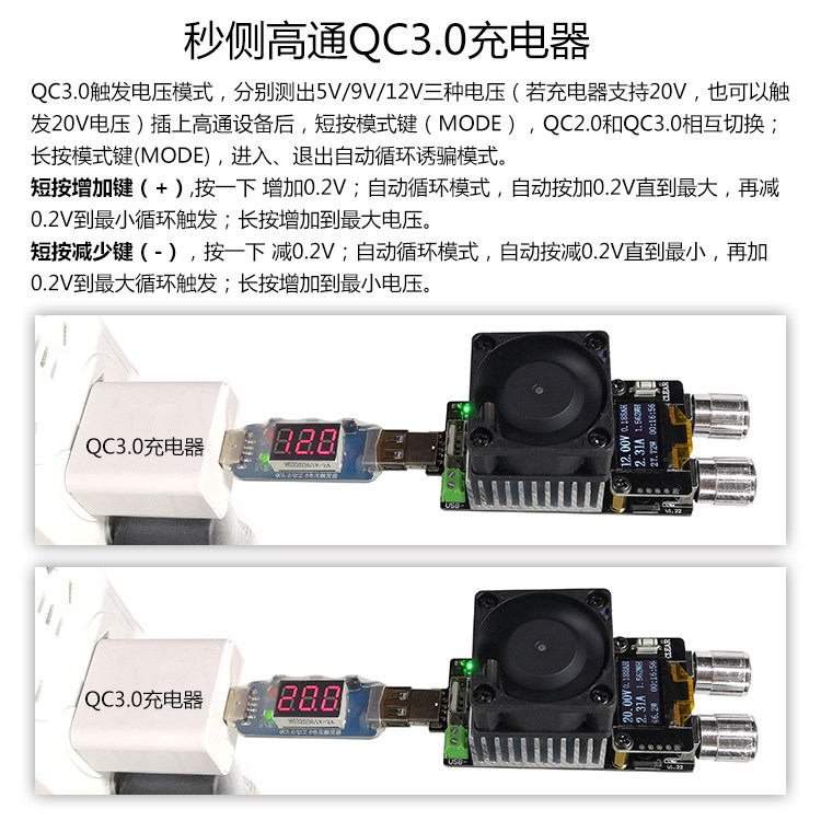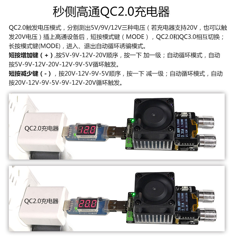 Qualcomm QC2 0 3 0 automatic detection tester voltmeter digital tube display decoy PD trigger