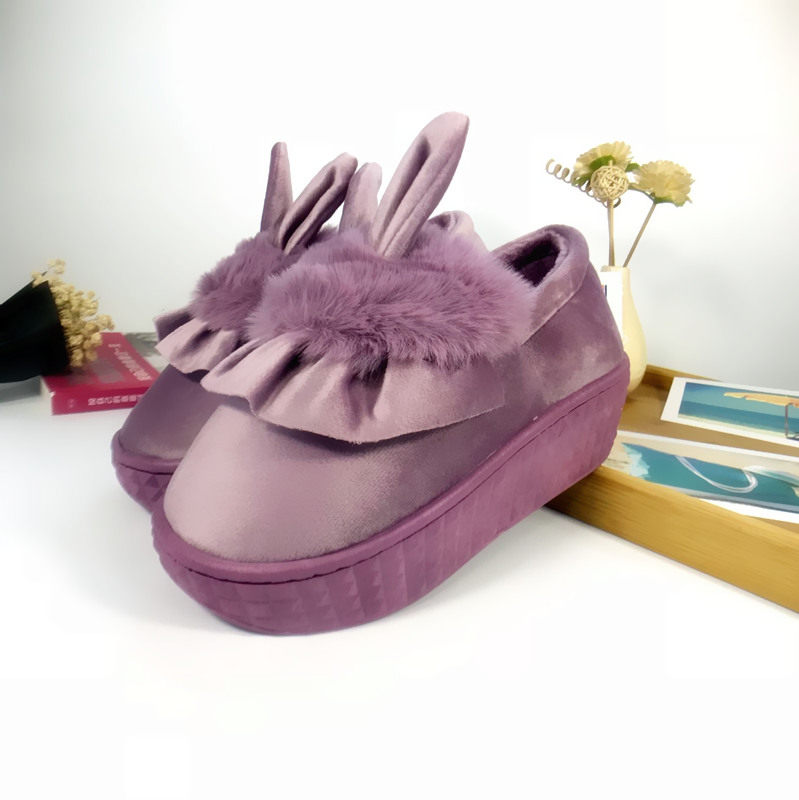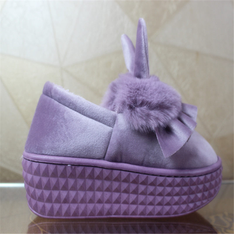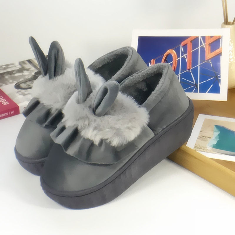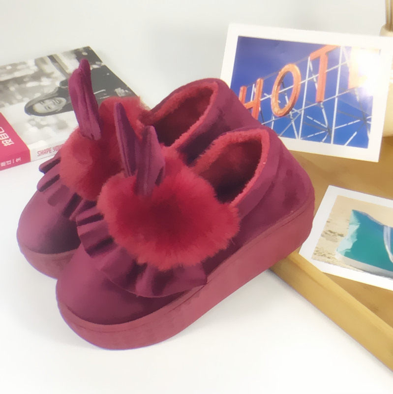 Indoor Home Cotton Shoes High Heel Slope Heel Slip Winter Lady Bag Heel Thick Bottom Korean Version Cartoon Cute Cotton Slippers