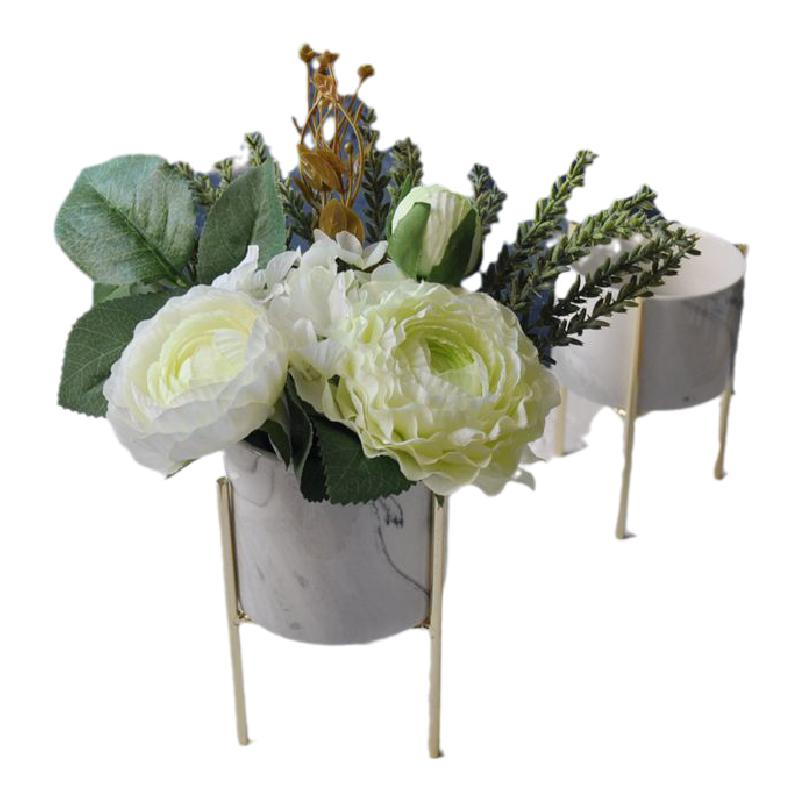 Ins simple Nordic style iron frame marble ceramic hydroponic flowerpot green plant potted creative flowerpot