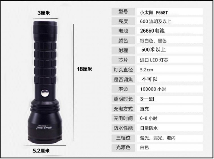 Small sun 658T strong light flashlight charge T6 light core remote outdoor household LED camping 26650 lithium battery