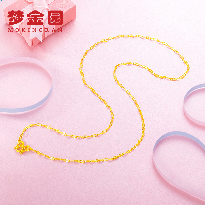 Dream Golden Garden Gold Necklace Women's Foot Jin Wan Chun Series Versatile Mouth Chain Plain Chain Prime Gold Pricing Gift