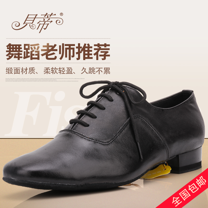 Betty modern dance shoes Men's adult national standard dance straight bottom real cow leather waltz social dance shoes