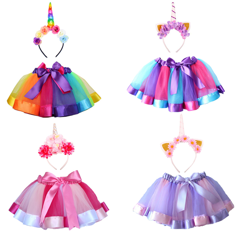 Children Rainbow fluffy dress unicorn Cos Performance suit Unicorn tutu hair stirrup hairpin hair clip