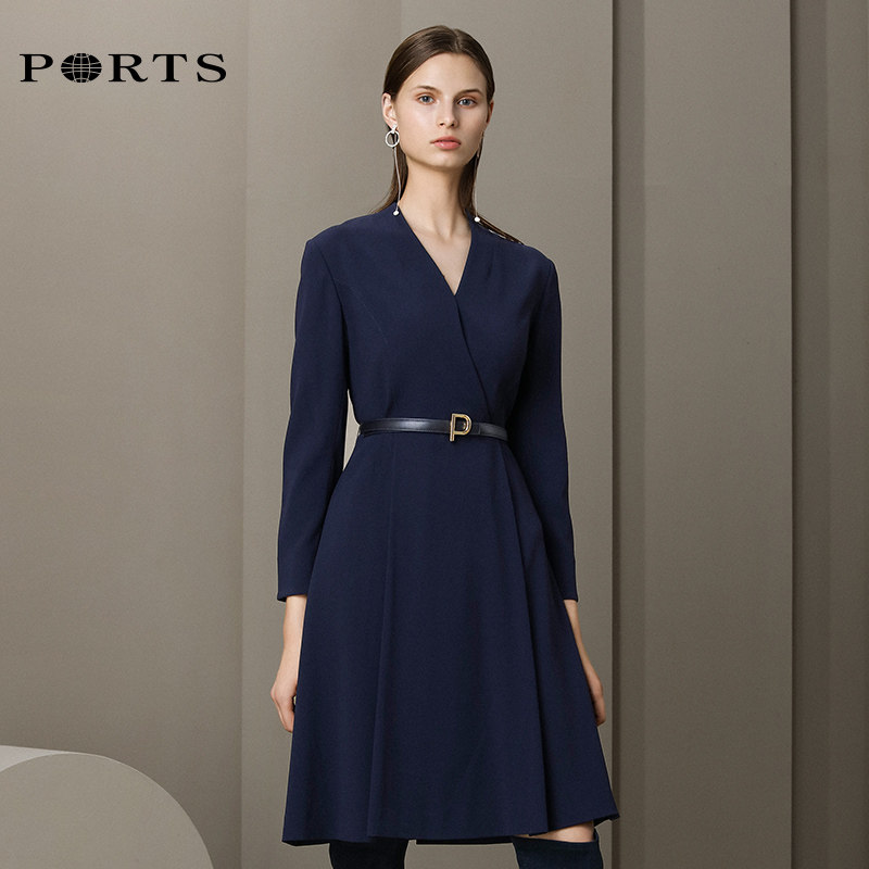 PORTS Baozi women's clothing OL commuter elegant intellectual dress female V-neck work clothes A-line skirt high waist spring and autumn