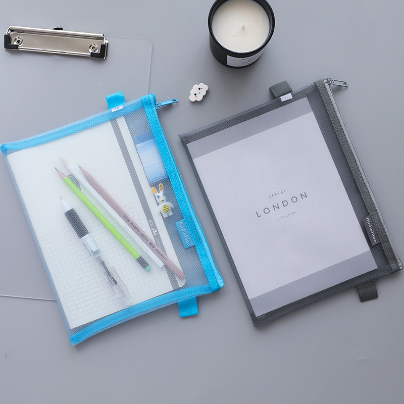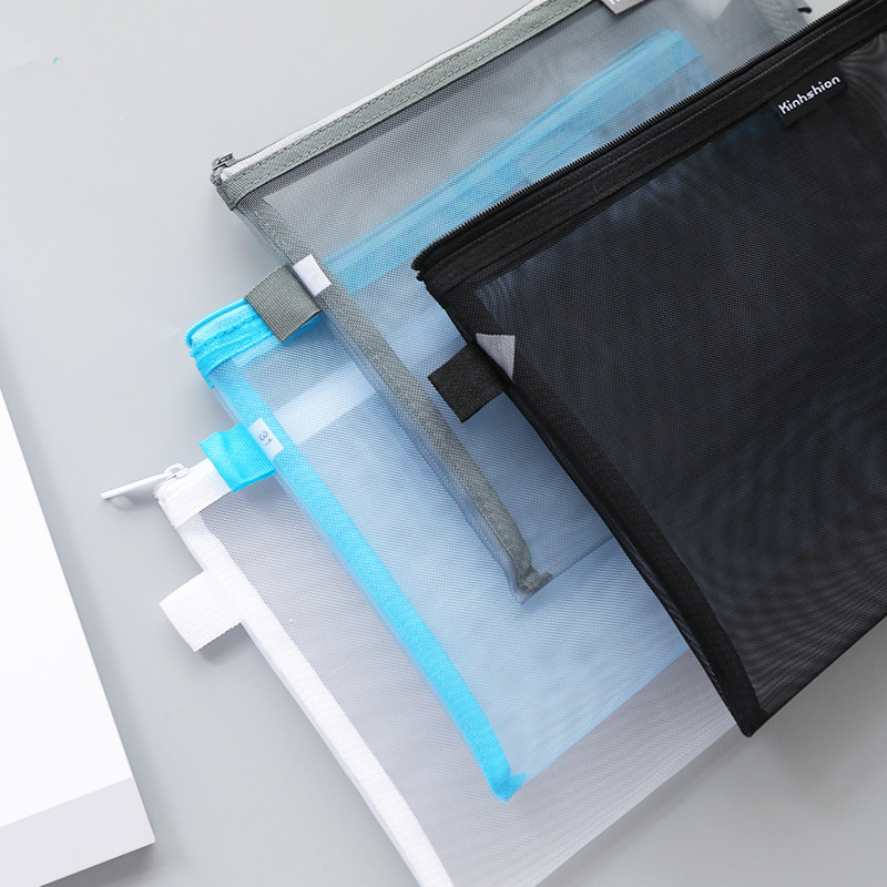 Brief About A4 Transparent Mesh Yarn File Bag Large Capacity Pen Bag Cashier Bag Student Examination Grid Pull Chain Bag Stationery