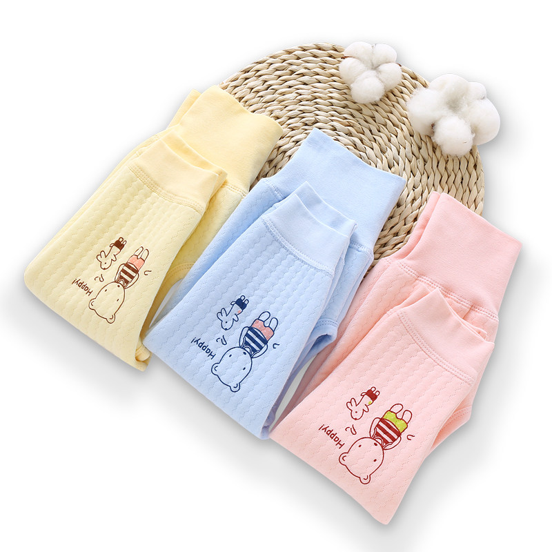 Bean dragon warm pants can be opened quilted warm sanitary pants baby high waist belly pants boys and girls open crotch pants