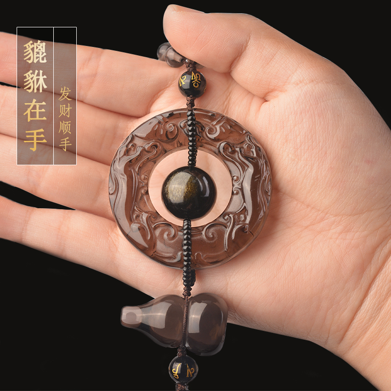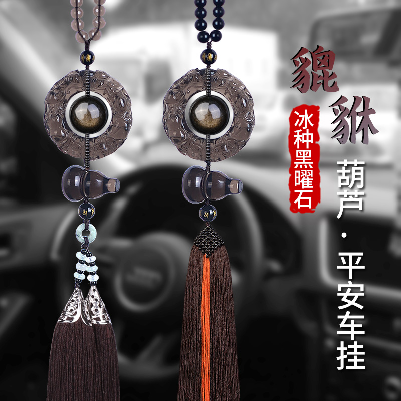 Natural ice species Obsidian Pixiu-gourd-large golden Yao stone beads-car hanging Shuangliu Su Natural ice species Obsidian Pixiu-large Golden Yao stone beads-Gourd-peace and happiness-car hanging upgraded version-natural ice