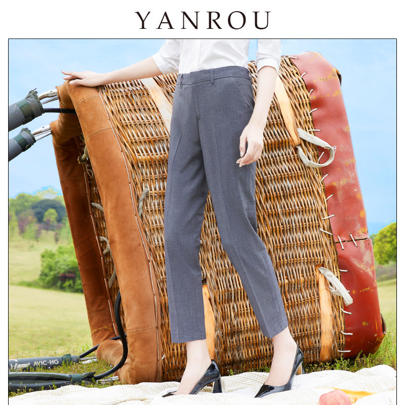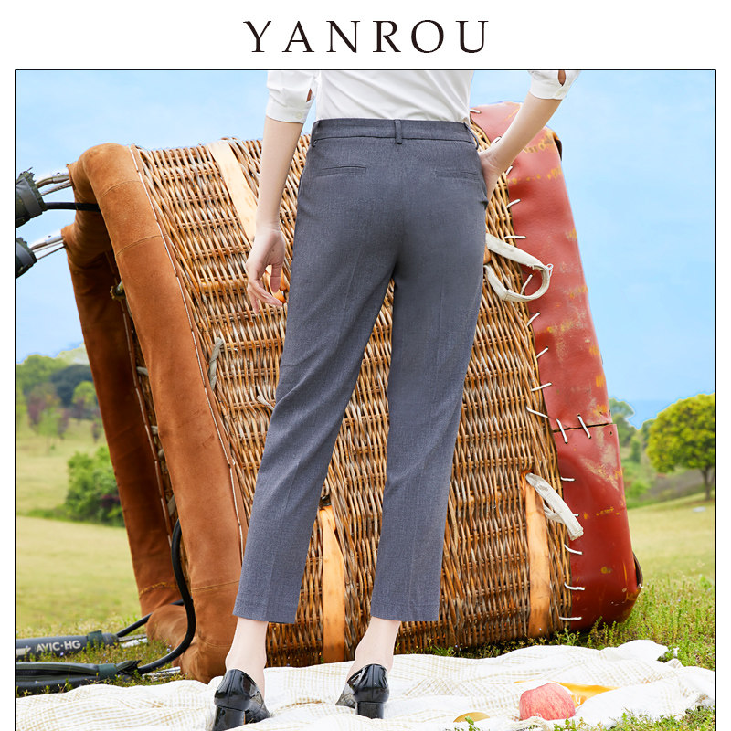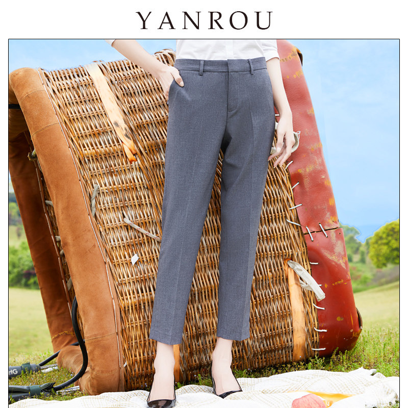 Stretch gray suit pants women's spring and autumn mid-waist straight slim slim pants professional formal wear work trousers