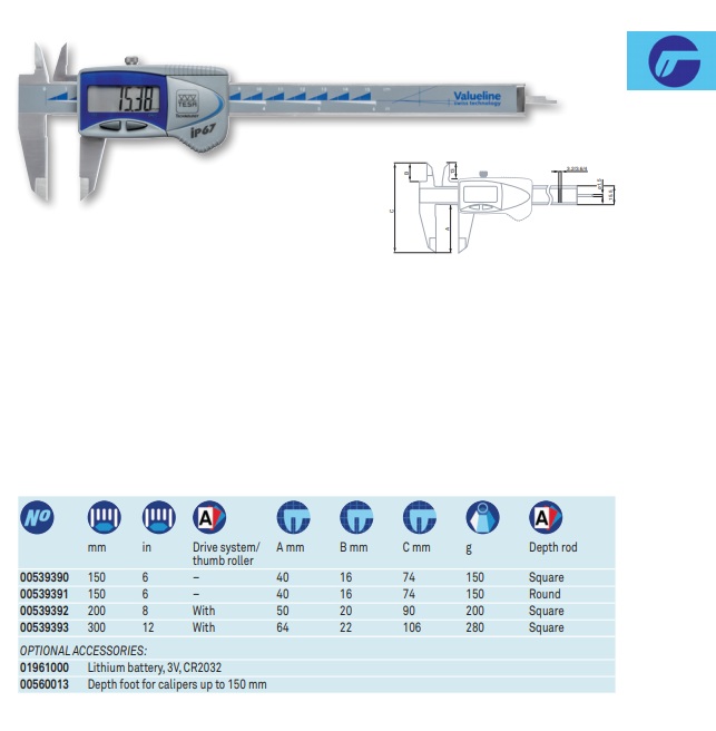 TESA 00539290 Digital display 00539390 Caliper 00539391 00539392VALUELINE