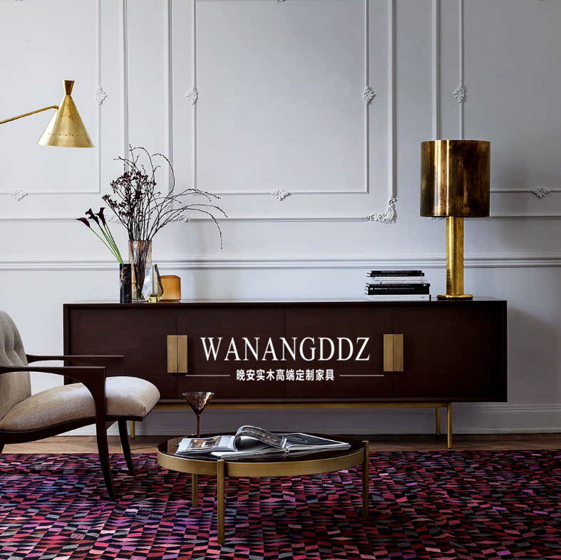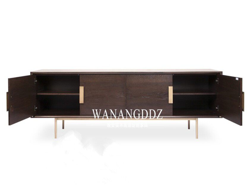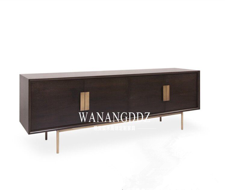 American Solid Wood TV Cabinet Hu Peach Color Light Lavish TV Cabinet Decorated Cabinet Dining Cabinet Rear Modern Stainless Steel TV Cabinet
