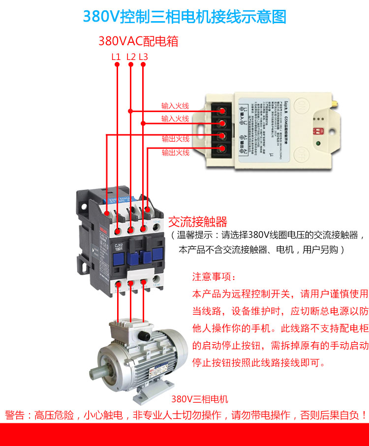 The 380v controller controls the contactor coil