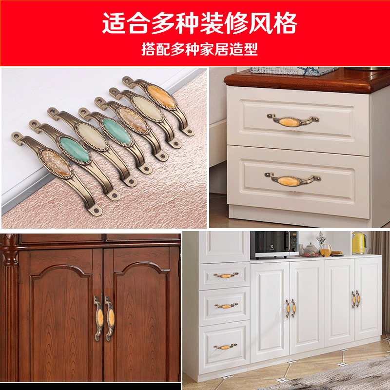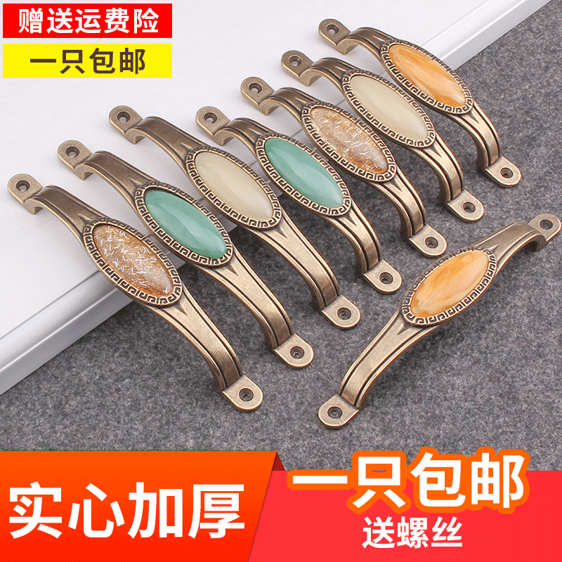 Eurostyle Ming Dress Ceramic Handle Simple house door Wooden Door Jade Piece handle Handle Wardrobe Whole Closet Cabinet Door Retro-free Punched Handle