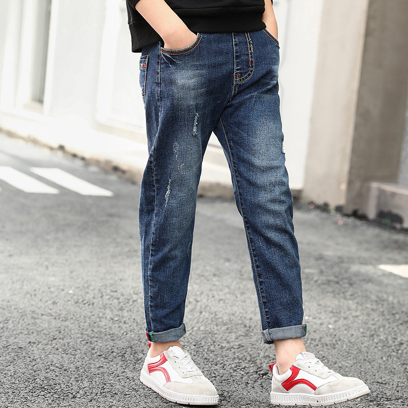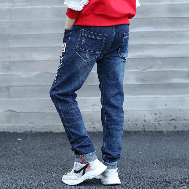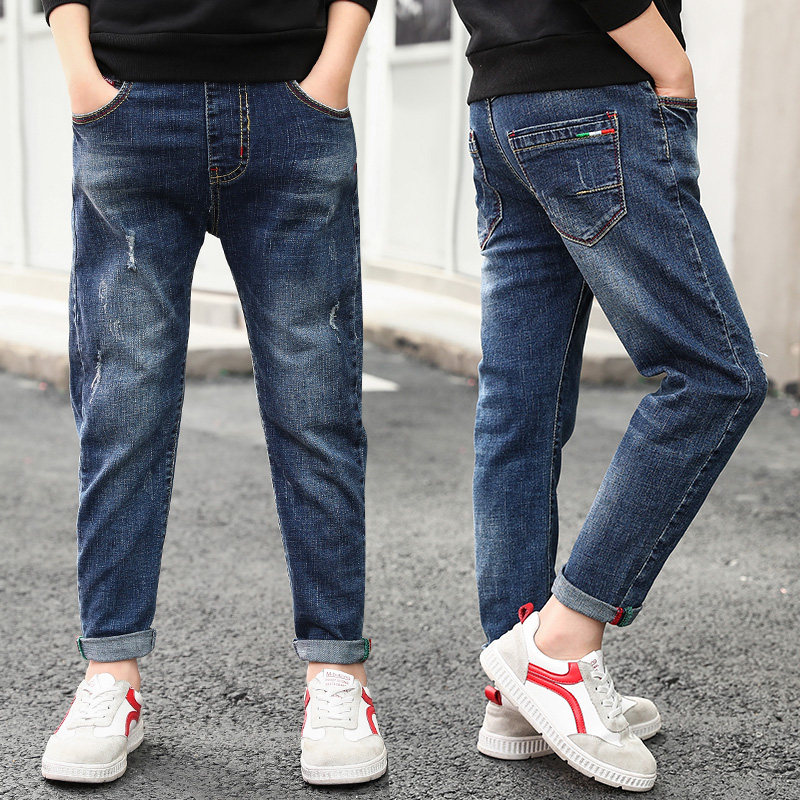 Boys' jeans 2021 new middle-aged children's casual pants Korean version fashion boys spring and autumn trousers trendy clothes